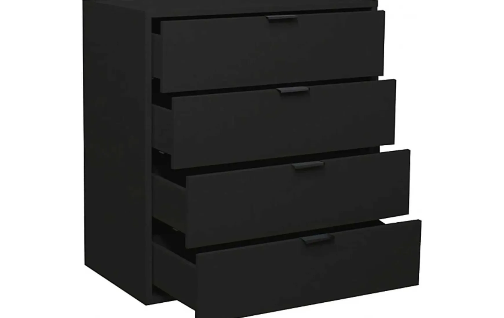 Diese formschöne Kommode verkörpert mit Ihrer matten oberfläche und den schwarzen Griffen moderne Eleganz. Doch nicht nur mit seiner modernen Optik und der hochwertigen Verarbeitung überzeugt diese Schubladenkommode: Sie bietet mit Ihren Maßen von 81 x 87 x 45 cm und den vier großen Schubladen einen großen Stauraum für die unterschiedlichsten Utensilien und lässt sich in jeden Raum integrieren.