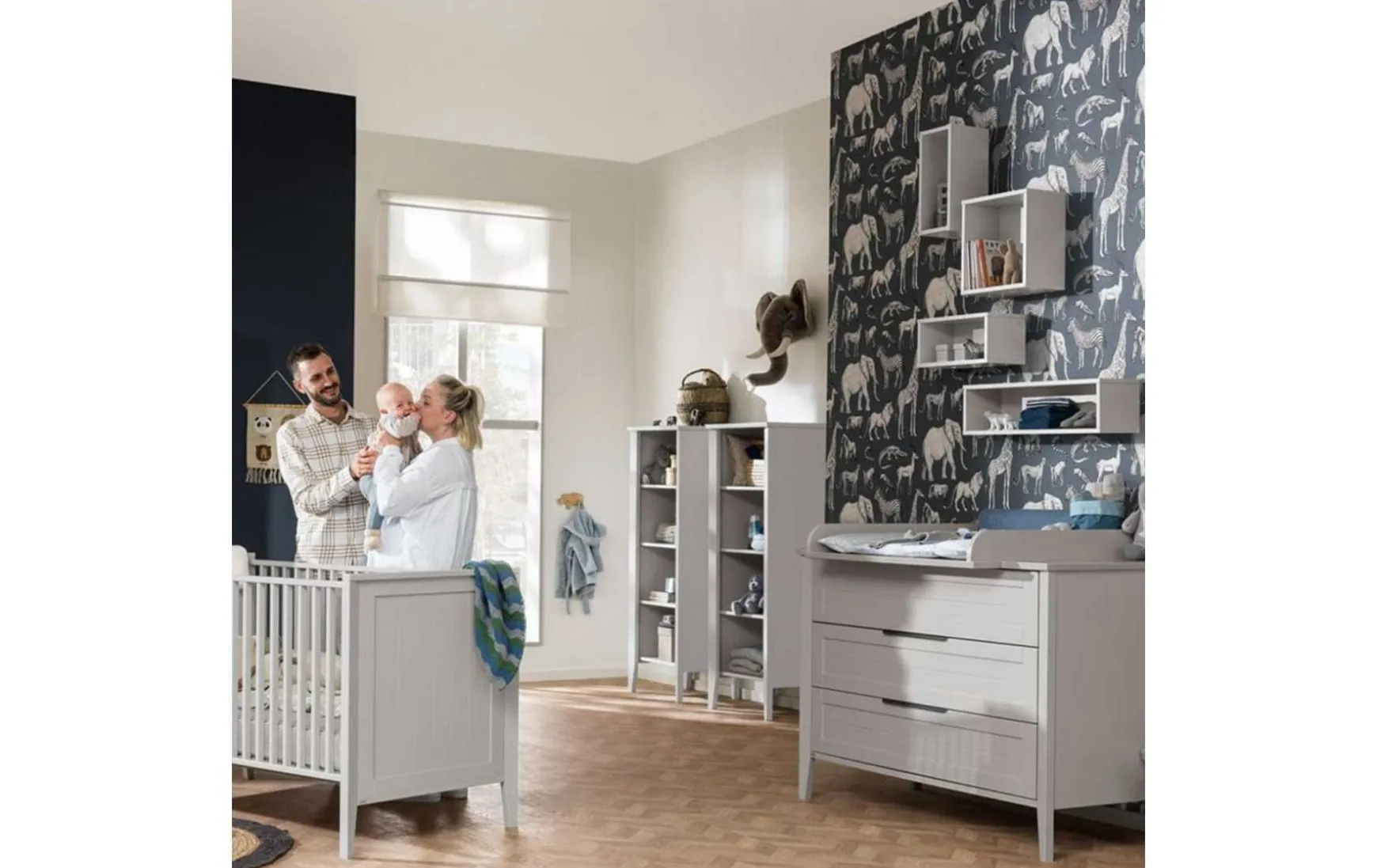 - Gegen Mehrpreis erhältlich: Kinderbett, Kleiderschrank, Standregal, Wickelaufsatz, Wandregal und 3x Wandbox