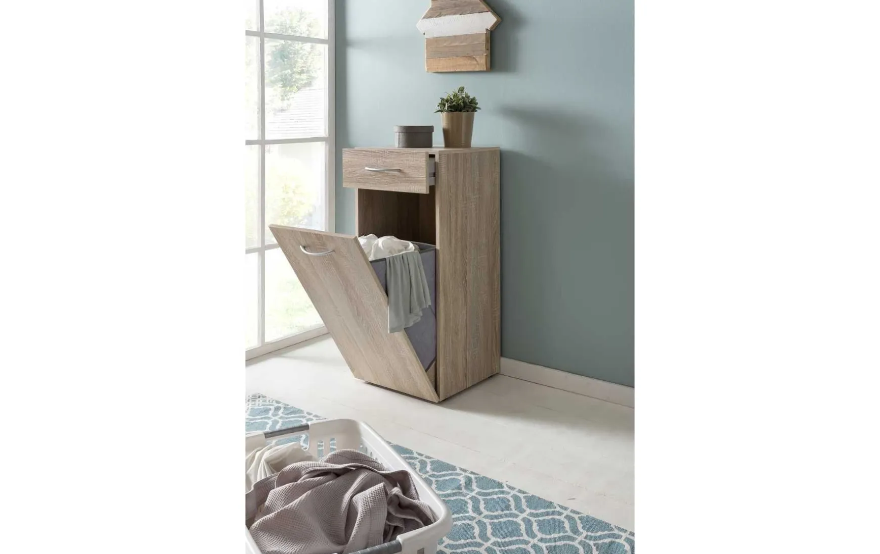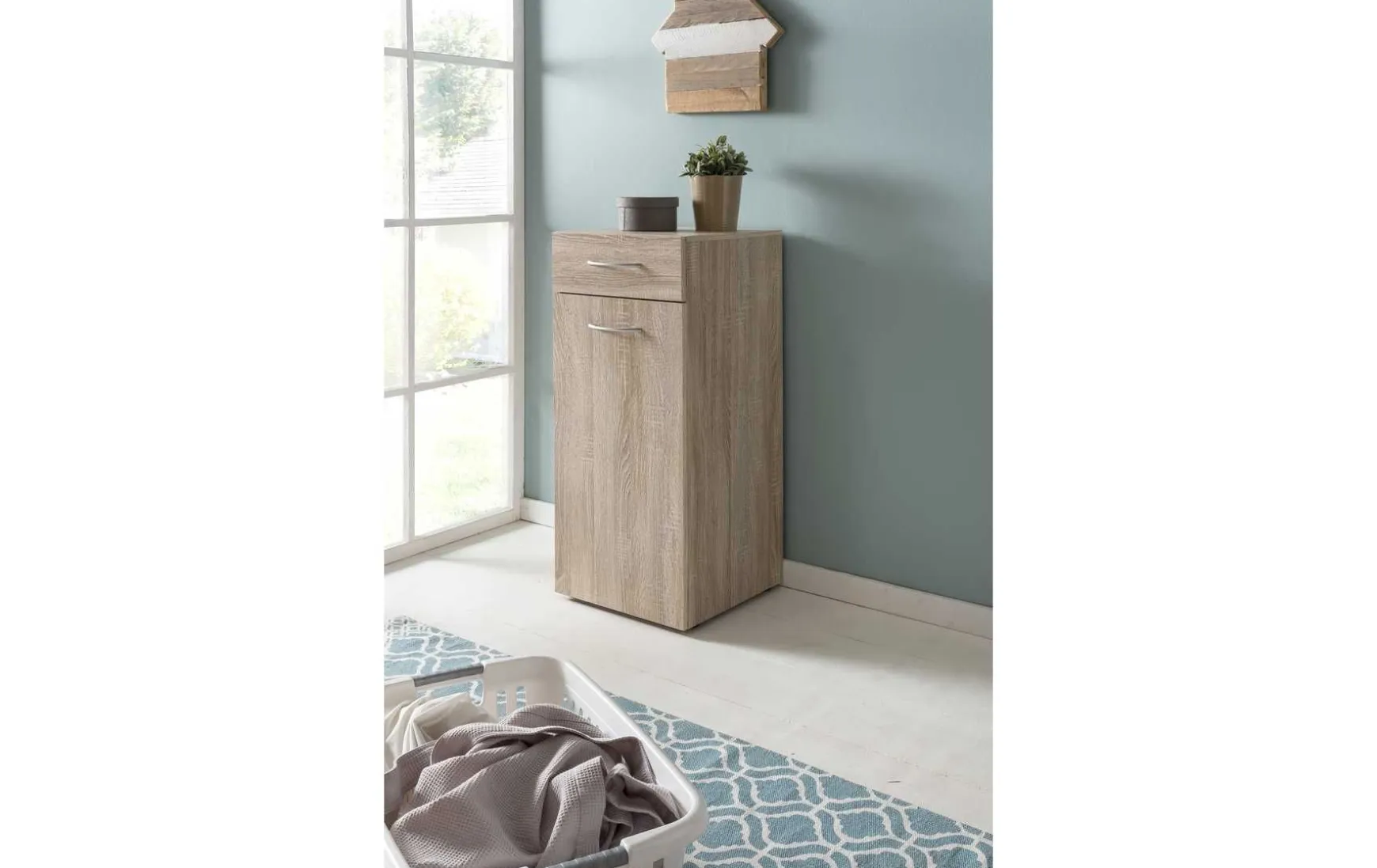 Die Kommode in Eiche Sägerau Dekor überzeugt durch ihr modernes und kompaktes Design und lässt sich vielseitig im Wohn- oder Schlafzimmer einsetzen. Dank ihrer praktischen Form kann sie auch als Wäschepouf oder zusätzliche Ablagefläche genutzt werden. Mit den Maßen von ca. 40 × 98 × 40 cm (B/H/T) ist sie platzsparend und dennoch funktional. Die Schublade bietet Stauraum für Kleidung, Accessoires oder andere Alltagsgegenstände, während das Eiche Sägerau Dekor eine natürliche und warme Optik in den Raum bringt.