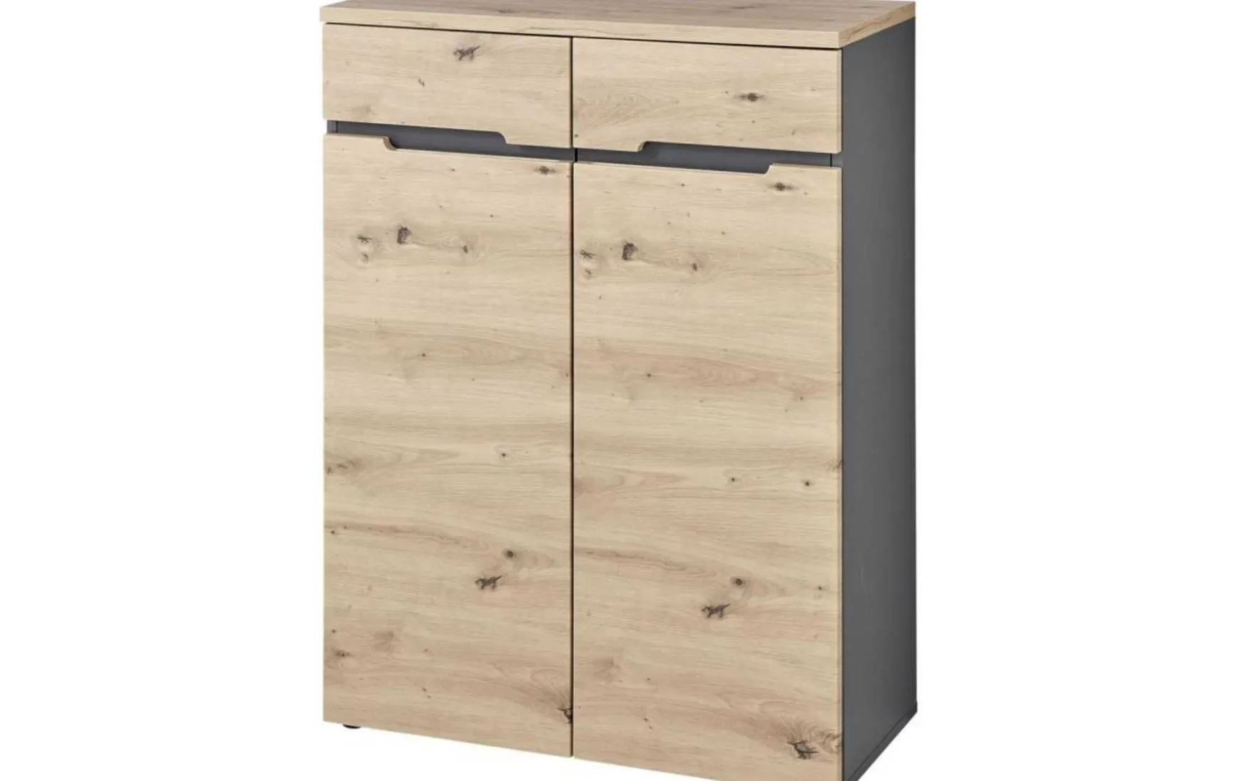 Diese Kommode verbindet modernes Design mit praktischem Stauraum. Die hochwertige Verarbeitung sowie die harmonische Kombination aus Artisan Eiche und Graphit verleihen ihr eine zeitgemäße Optik. Dezente Griffausfräsungen an den Fronten setzen dabei stilvolle Akzente und unterstreichen das klare Design.