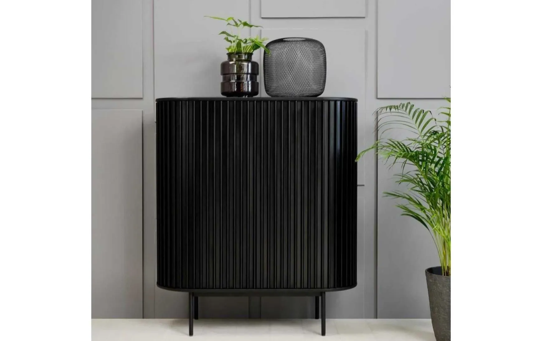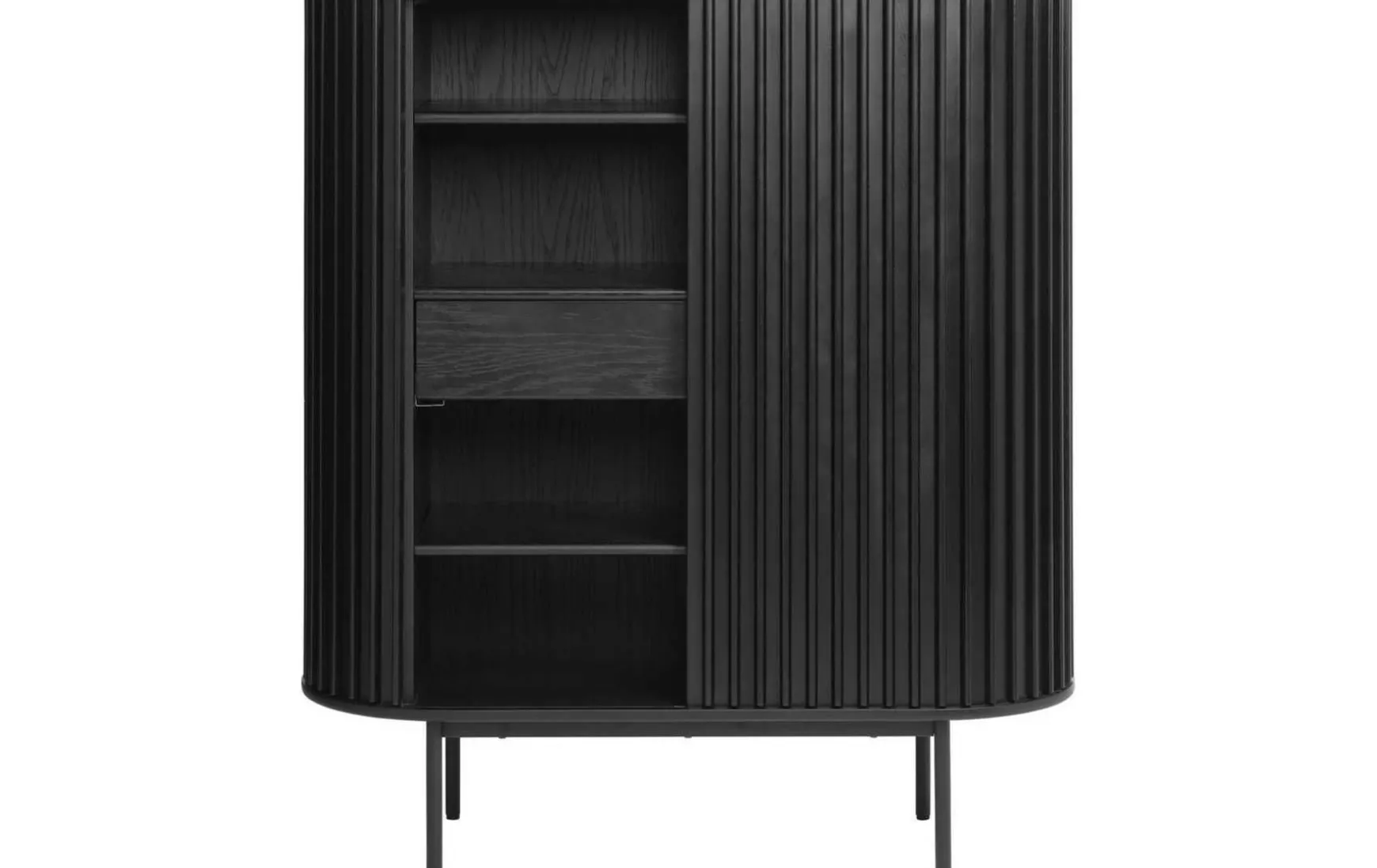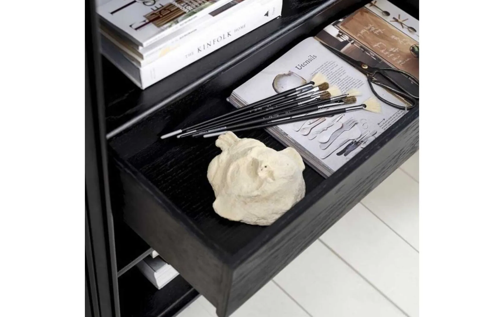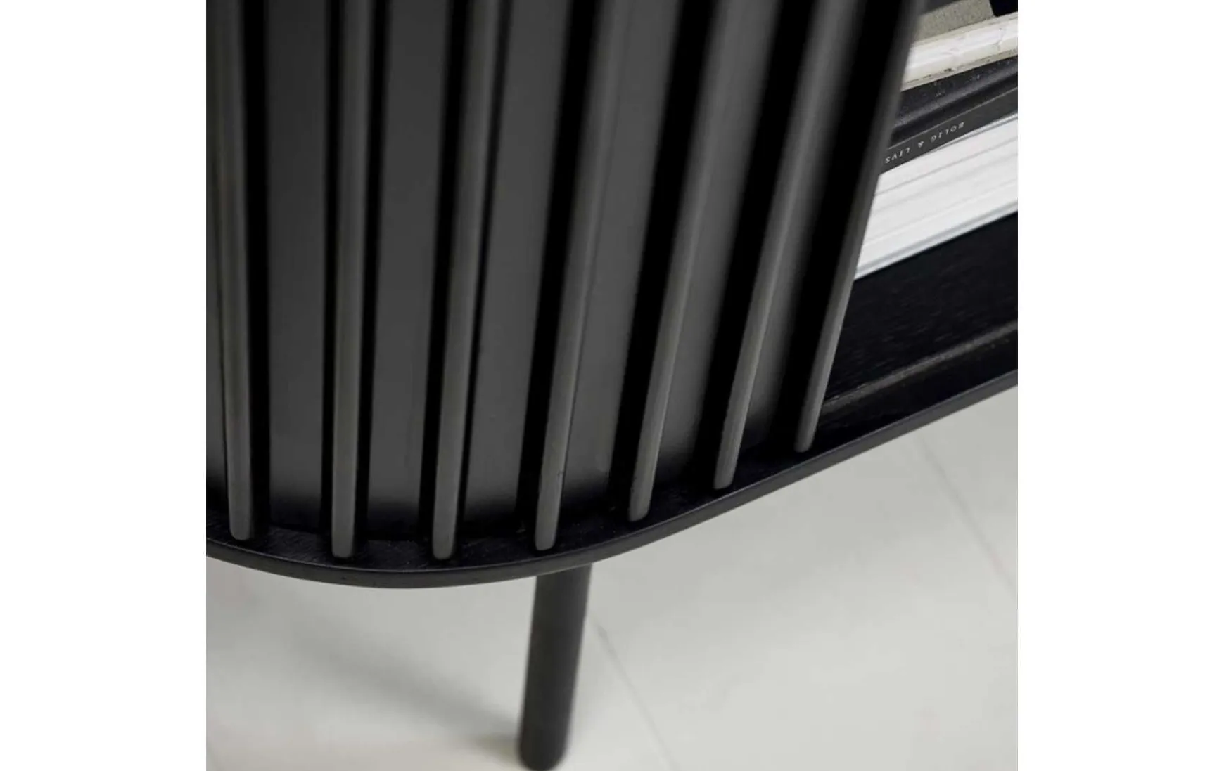 Dieser Kommodenschrank kombiniert die Robustheit von Eiche mit der Robustheit von Metall, was für ein langlebiges und stilvolles Erscheinungsbild sorgt. Die schwarze Farbe verleiht dem Schrank ein modernes und elegantes Aussehen, sodass er perfekt in verschiedene Wohnstile passt. Ob Sie zusätzlichen Stauraum oder einen Blickfang für Ihr Wohnzimmer suchen, dieser Schrank bietet alles. Mit seinen hochwertigen Materialien und seiner Handwerkskunst ist diese Kommode eine zuverlässige Wahl für jahrelangen Gebrauch.