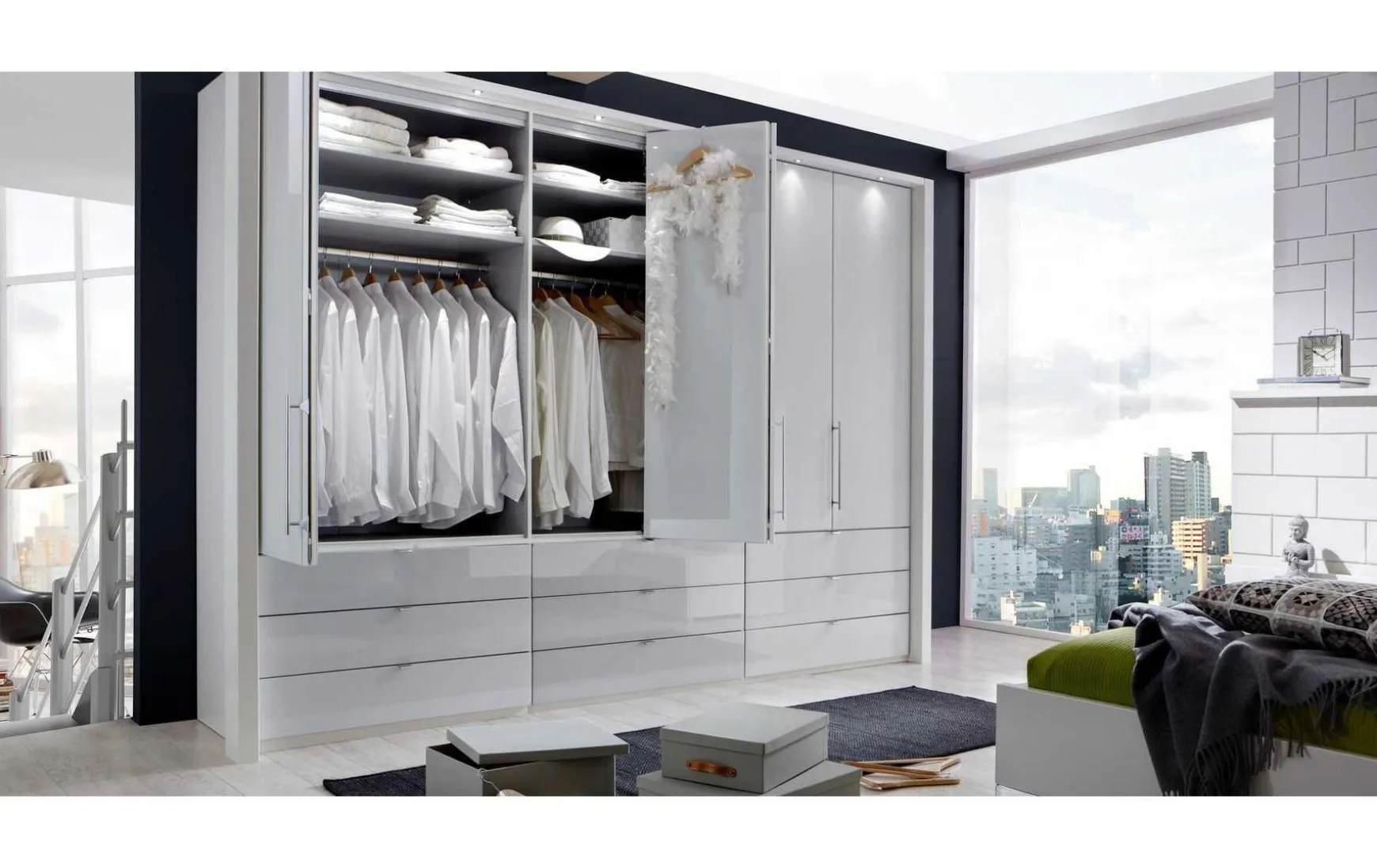 - Panorama-Funktionsschränke mit Falttüren und Schubladen