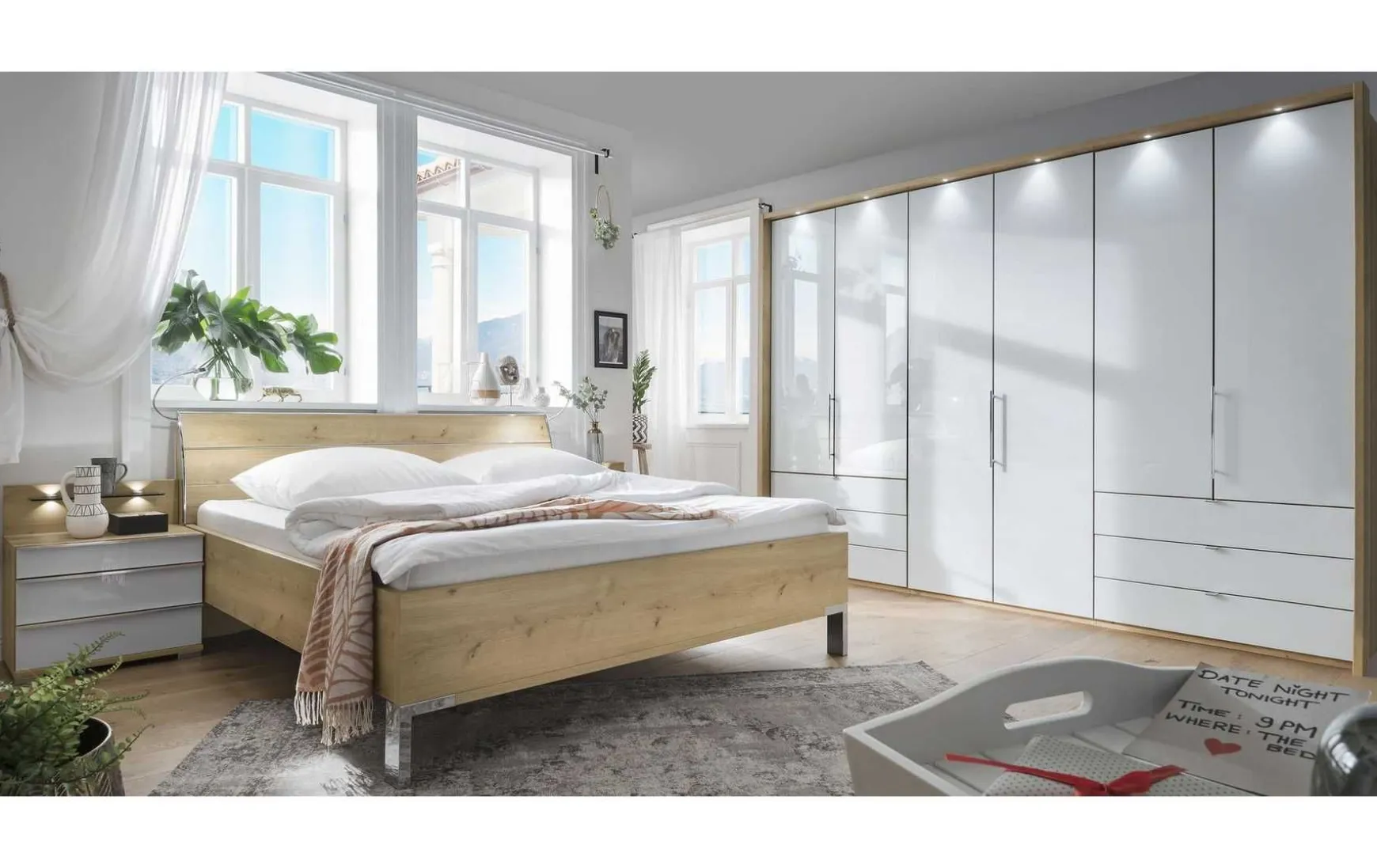 - Im Preis enthalten: Panorama Falttürenschrank mit Falttüren, Futonbett