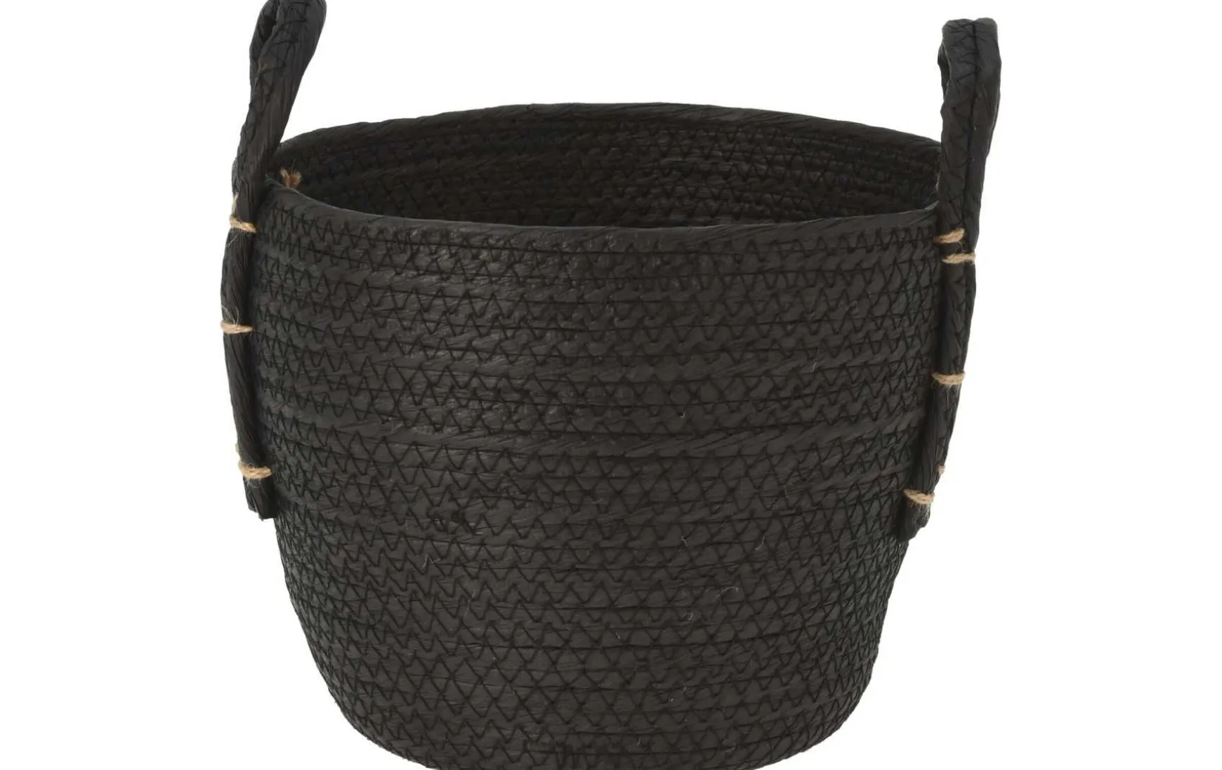 Dieser Korb aus schwarzem Papier hat zwei Griffe und ist eine styische Option, um diverse Objekte zu verstauen.