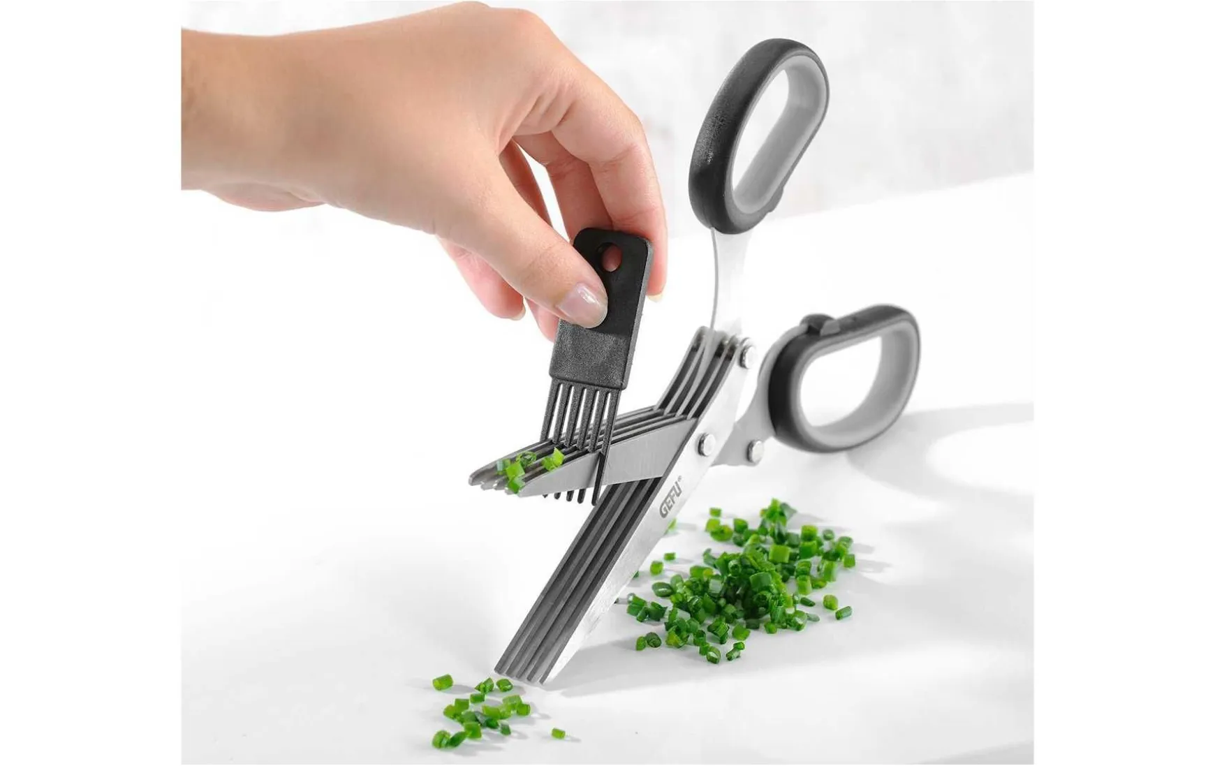 Mit ihrer fünfschneidigen Klinge garantiert die Kräuterschere schnelles und unkompliziertes Arbeiten, ebenso wie aromaschonendes Zerkleinern von Schnittlauch & Co. Perfekt zugeschnitten können Kräuter so in jedem Gericht ihren vollen Geschmack entfalten.