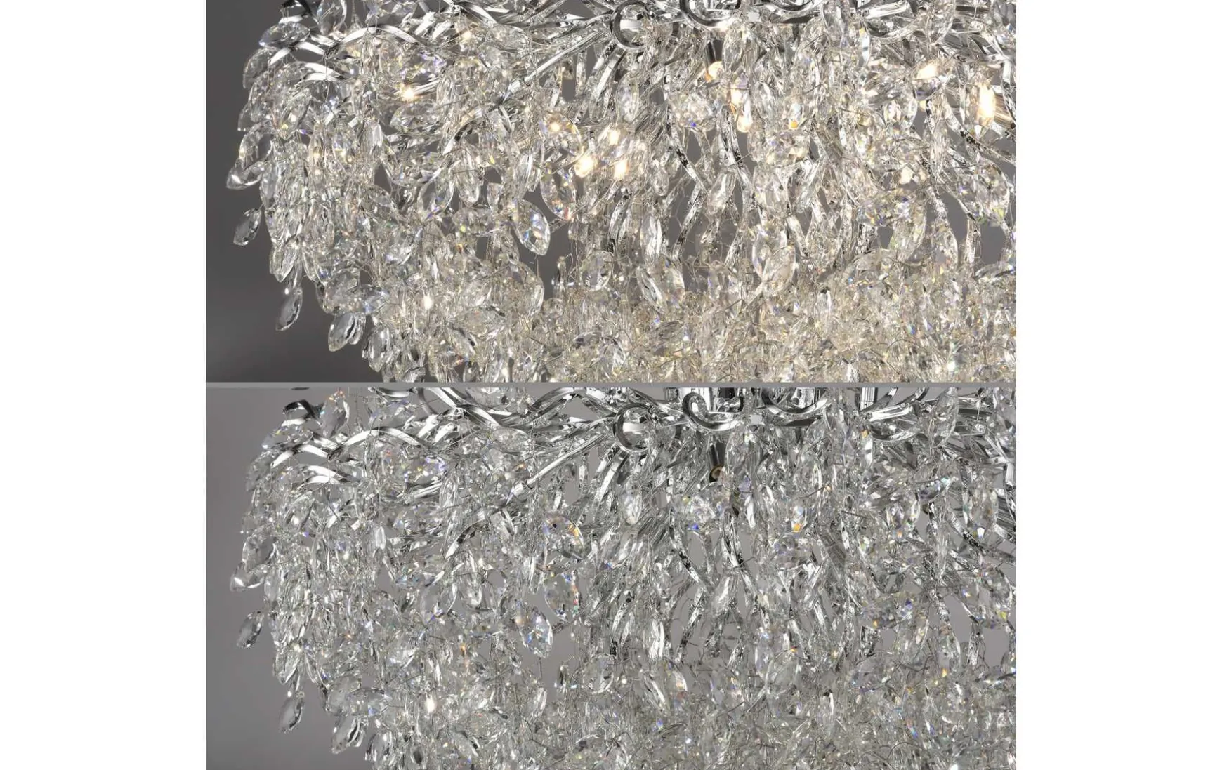 Mit seiner eleganten chromfarbenen Oberfläche und dem hochwertigen Material aus Messing setzt dieser Kronleuchter ein echtes Statement.