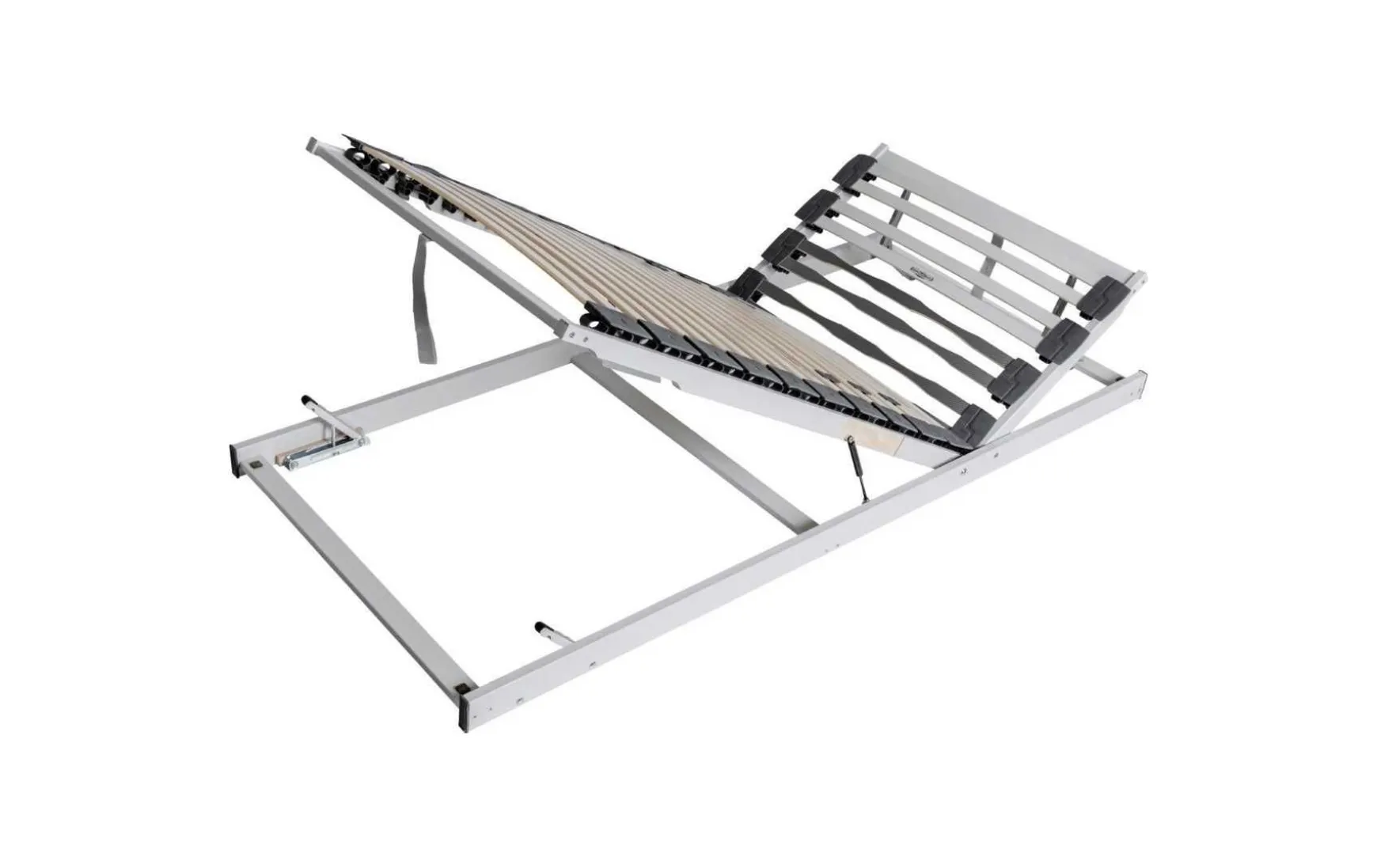 - Anmerkungen: folierter Schichtholzrahmen, 14 Doppellattenelemente, Schulterabsenkung, Kopf- und Fußhochsteller mit Gasdruckfedern, verschiedene Größen zum individuellen Preis erhältlich