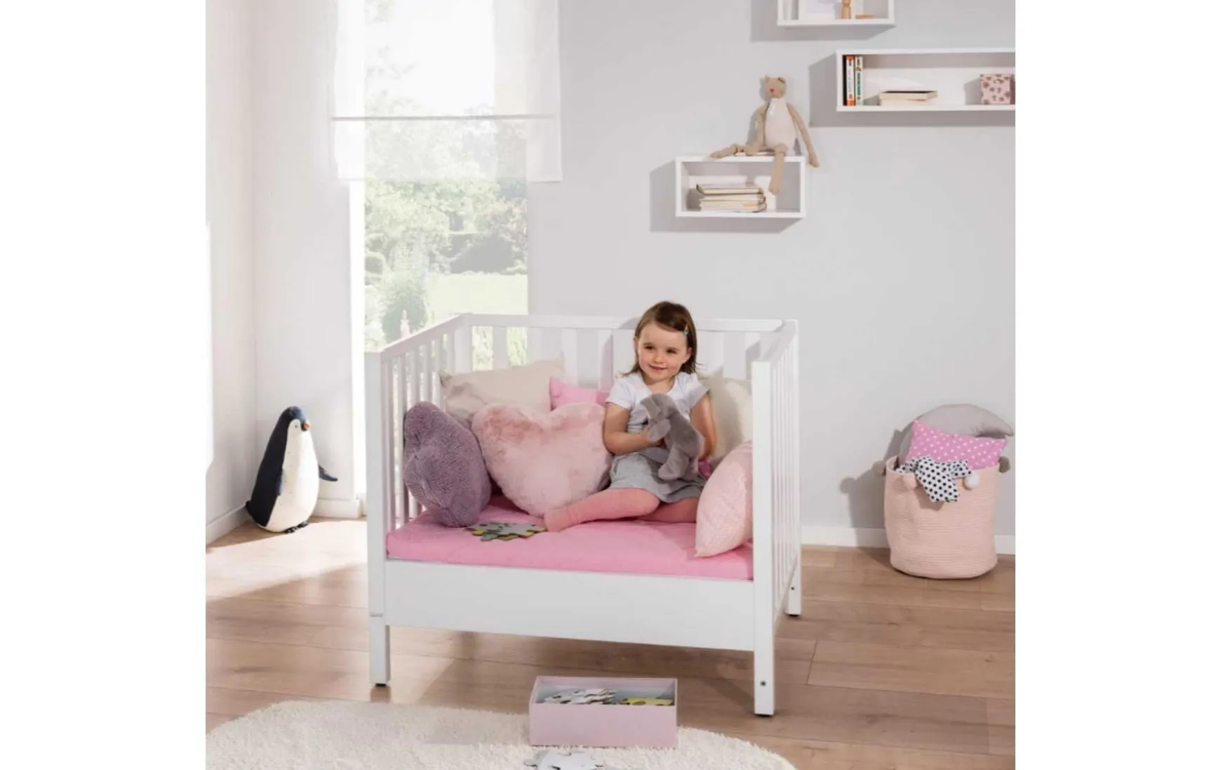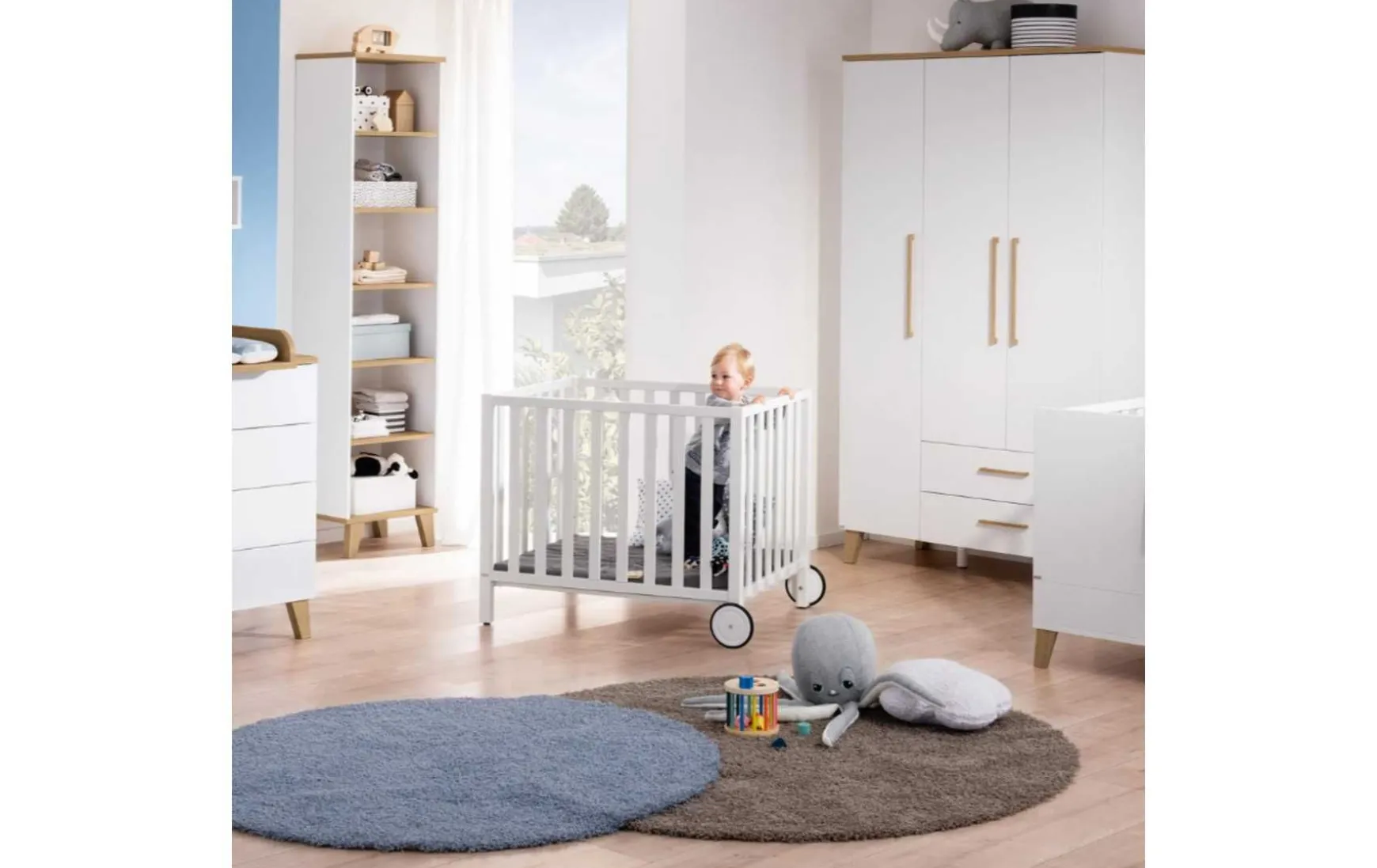 Laufgitter mit schönem und zeitlosem Design. Aus Sicherheitsgründen ist das geschlossene Laufgitter nur für Kinder bis 24 Monate und einem Gewicht bis 15 kg geeignet.