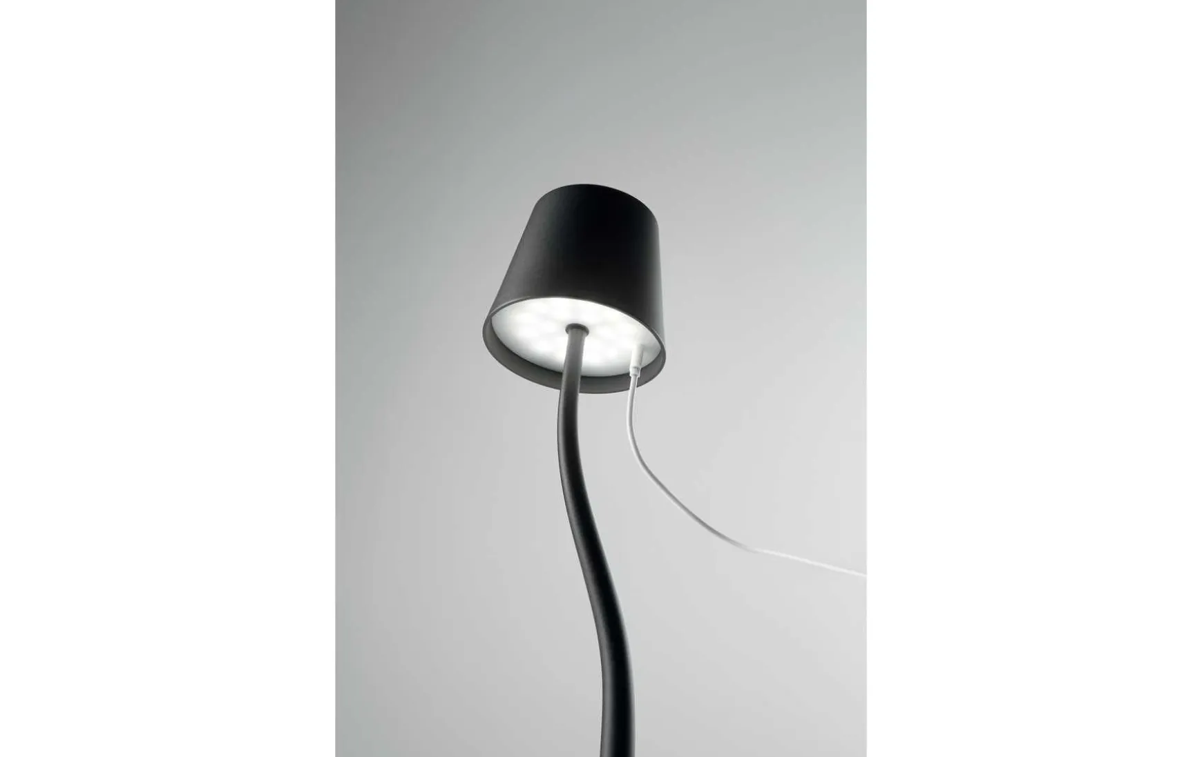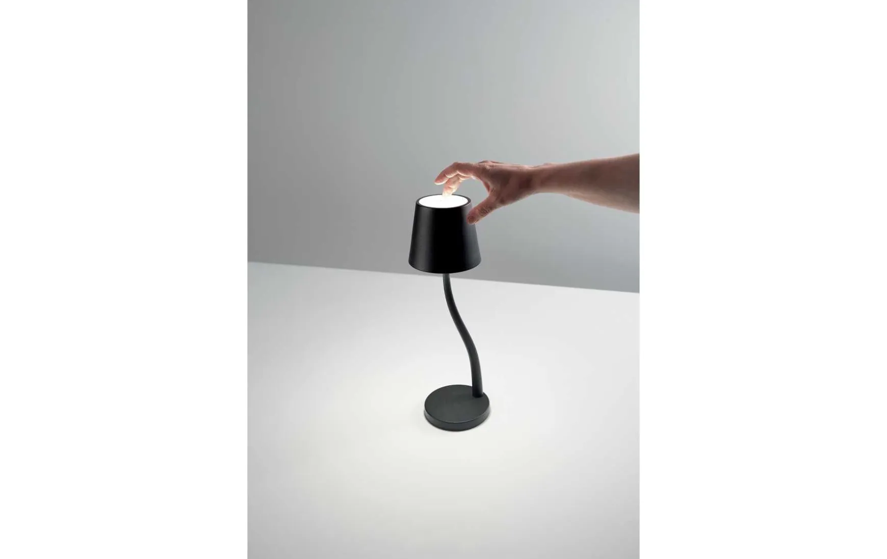 Solide AKKU-Tischleuchte in Schutzklasse IP54, stufenlos dimmbar, kippsicher durch niedrigen Schwerpunkt; Lichtabstahlung nach oben und unten, 320 Lumen