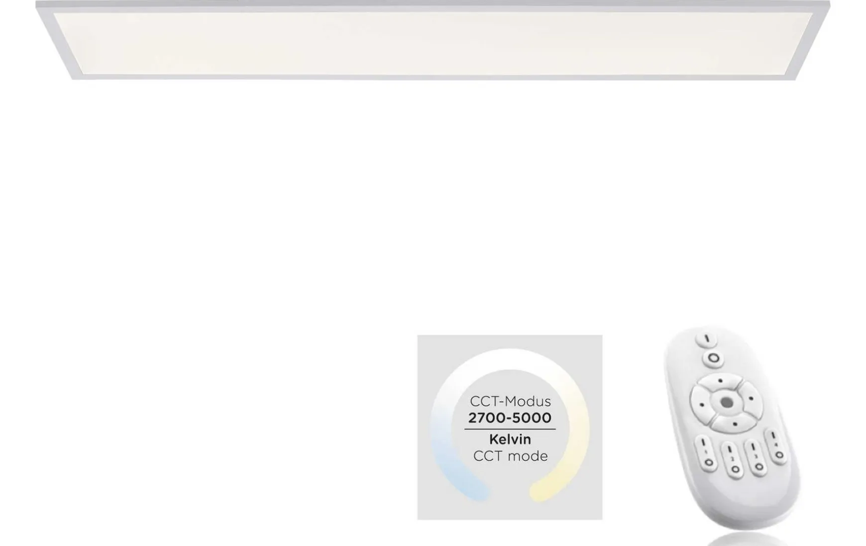 Das Leuchtmittel strahlt rund 4100 Lumen aus und Sie haben die Möglichkeit, die Leuchte in ihrer Lichtfarbe von Warmweiß (2.700 Kelvin) bis Tageslichtweiß (5.000 Kelvin) sowie in die Lichtstärke zu verändern.