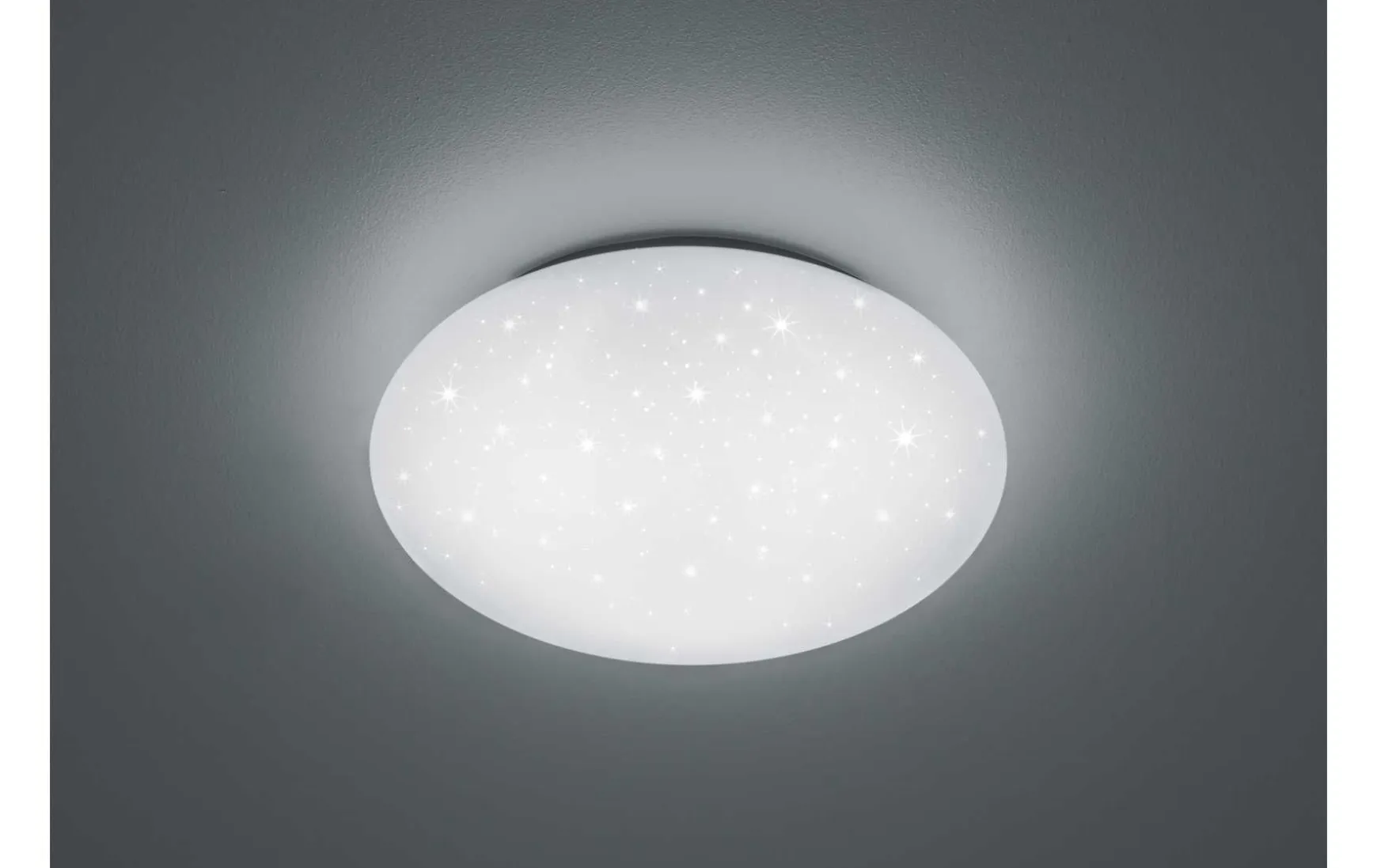 Diese Deckenleuchte überzeugt durch ein schlichtes Design, welches sich wunderbar verschiedenen Anwendungsbereich anpasst. Die runde Leuchte mit angesagtem Starlight Cover sorgt für individuelle Lichteffekte und einer angenehmen Ausleuchtung Ihres Wohnraums. Des Weiteren besticht die Leuchte durch eine IP44 Klassifikation und ist damit gegen Spritzwasser geschützt. Aus diesem Grund eignet sich die PUTZ sowohl als Beleuchtung in Ihrem Bad als auch in Ihren Wohn- oder Schlafräumen. Die Leuchte hat einen Durchmesser von 40 cm. Der weiße Schirm sorgt für ein stimmiges Gesamtbild und lässt sich harmonisch in verschiedene Farbkonzepte integrieren.