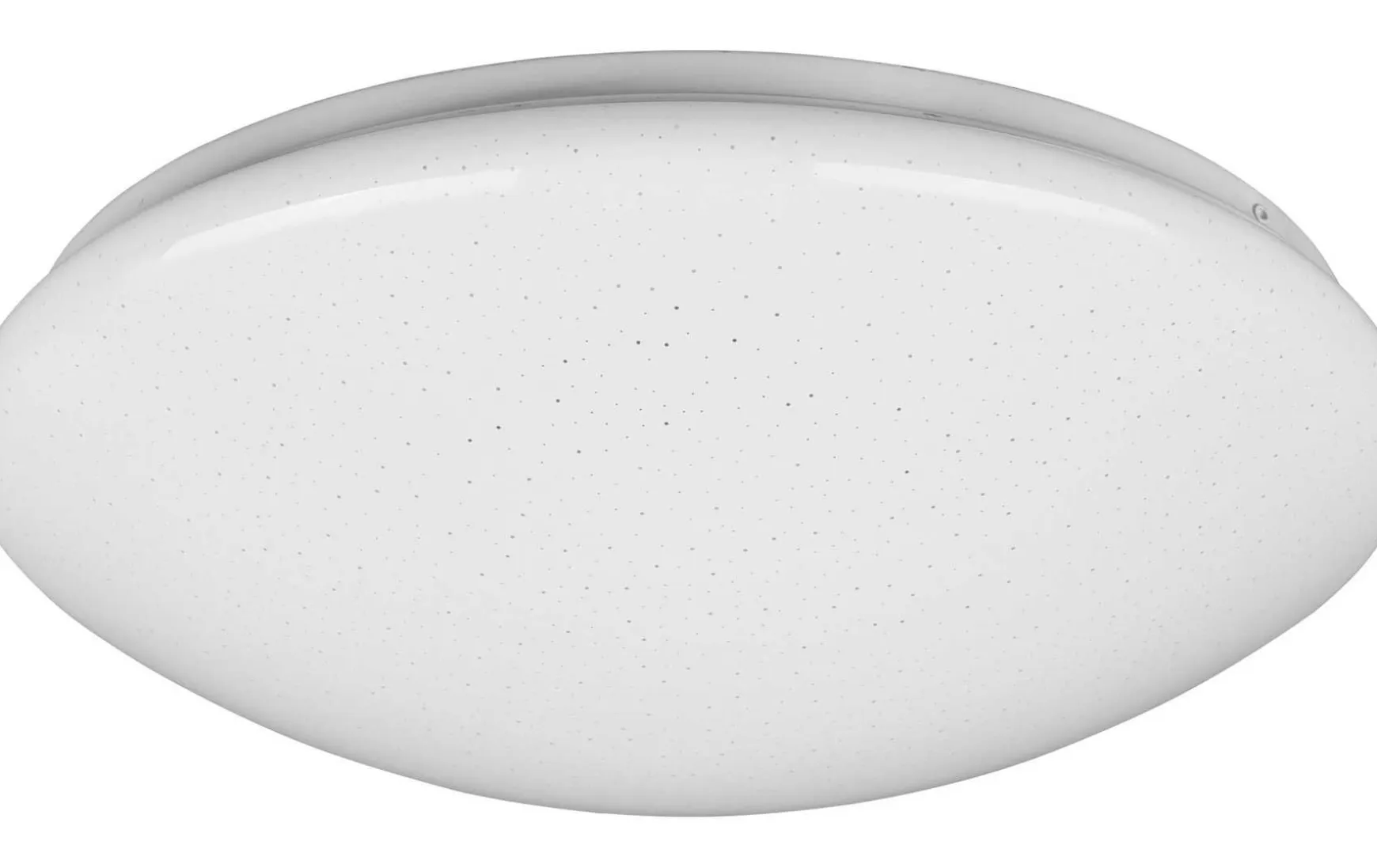 Die Optik der Deckenleuchte wird durch eine runde Form (D 38cm) geprägt und durch kleine Löcher im Kunststoff-Lampenschirm vollendet.