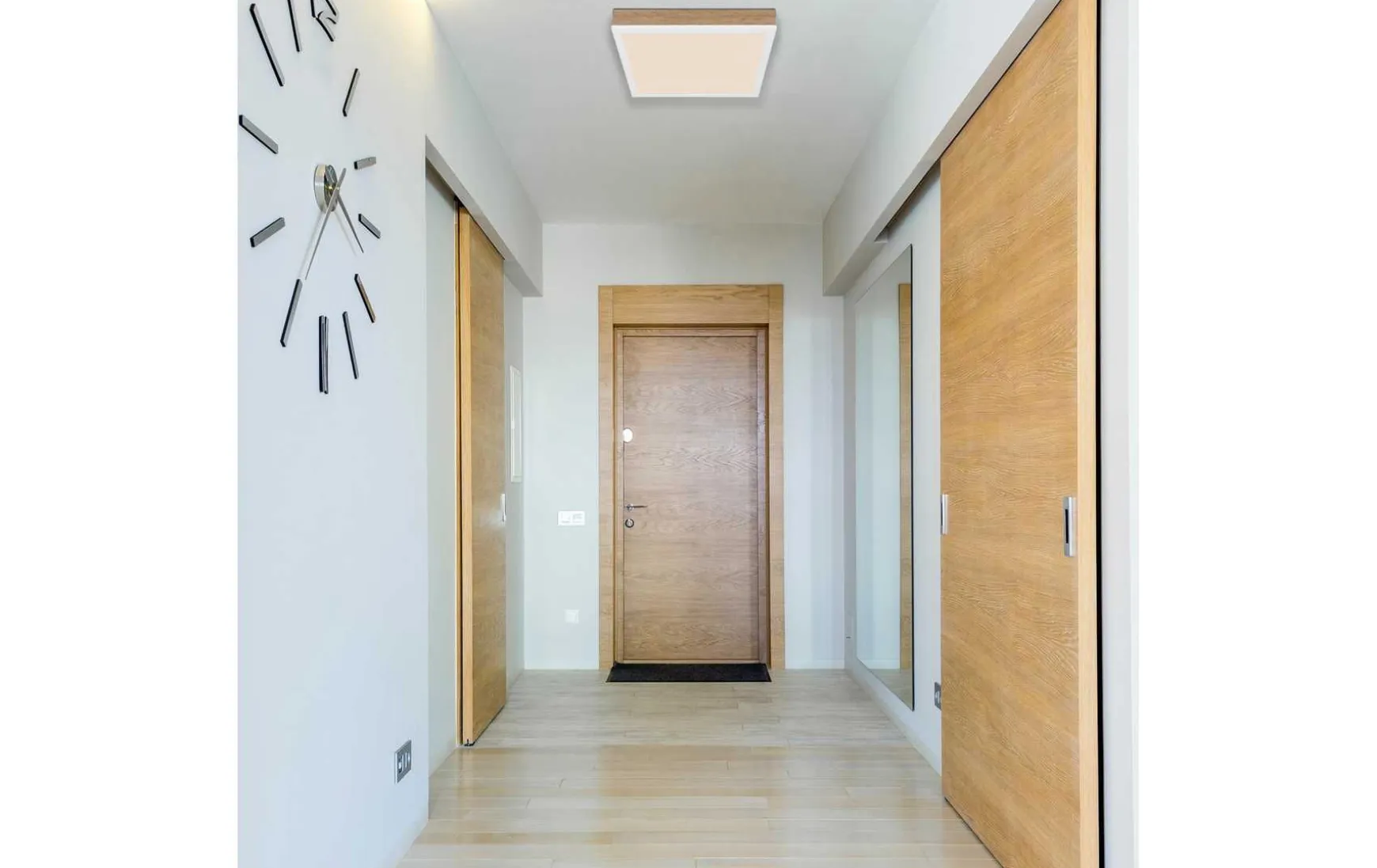 Die weiße matte Deckenleuchte aus Aluminium mit MDF-Holzoptik in dunkler Farbe und opalem Kunststoff ist eine elegante und moderne Beleuchtungslösung für jeden Raum. Die Leuchte misst 300 x 300 x 60 mm und ist mit einer leistungsstarken LED-Lichtquelle ausgestattet, die 12 W bei 230 V verbraucht und einen Lichtstrom von 1200 Lumen liefert. Die tatsächliche Lichtausbeute beträgt 800 Lumen bei einer warmweißen Farbtemperatur von 3000K, was für eine angenehme und gemütliche Atmosphäre sorgt. Die Deckenleuchte ist einfach zu installieren und kann problemlos an jeder Decke montiert werden. Das elegante Design verleiht jedem Raum eine moderne und stilvolle Note, während die MDF-Holzoptik für einen Hauch von Wärme und Natürlichkeit sorgt. Mit dieser Deckenleuchte können Sie Ihre Räume stilvoll und effektiv beleuchten.
