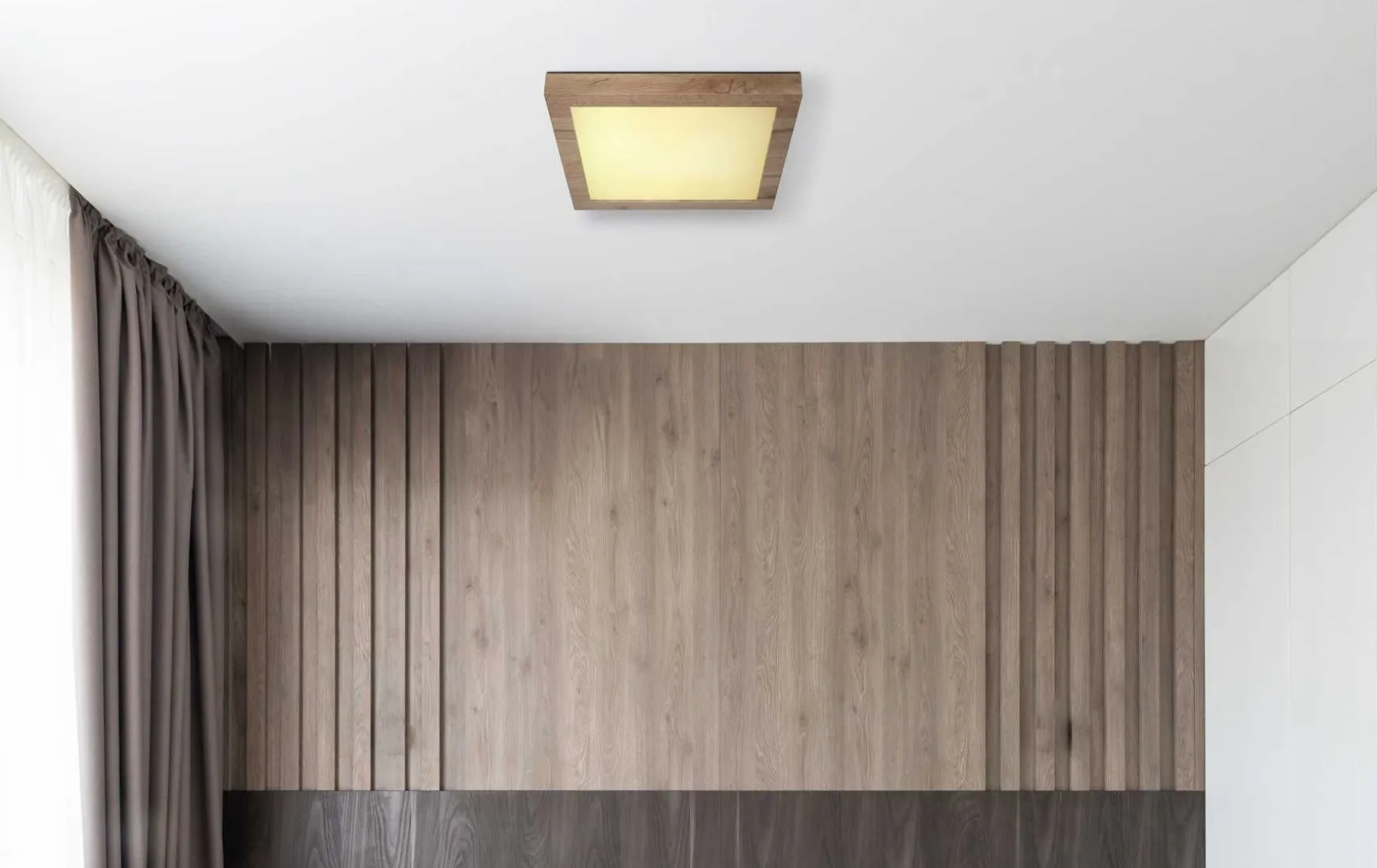 Diese Deckenleuchte besteht aus Metall in weiß matt, MDF in dunkler Holzoptik und Kunststoff in opal. Die Abmessungen betragen LxBxH: 350x350x60mm. Die Leuchte hat eine LED mit einer Leistung von 16W und einer Spannung von 230V, die eine Lichtquelle von 1800lm Source und 620lm Output bei einer Farbtemperatur von 3000K bietet.