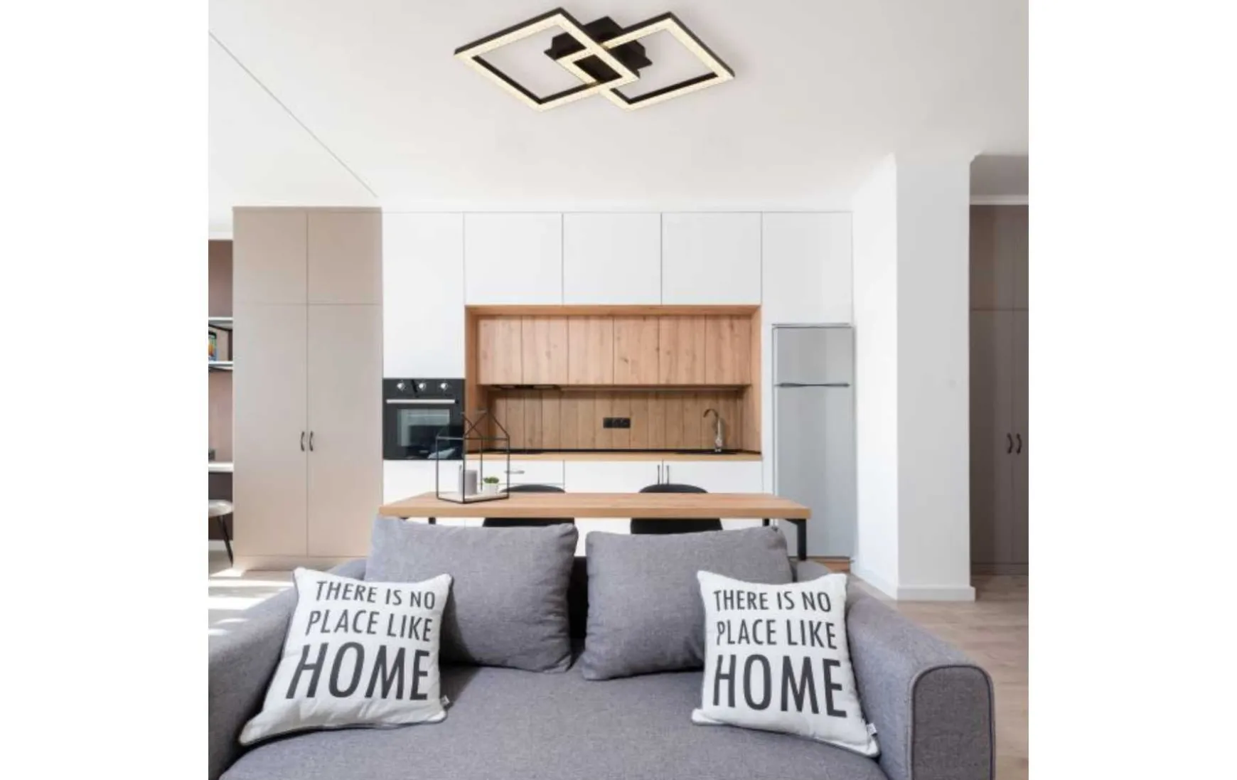 Diese Deckenleuchte besticht durch ihr rechteckiges Design mit zwei übereinander angeordneten Quadraten. Der Korpus der Deckenleuchte ist aus schwarz mattem Kunststoff gefertigt, was ihr ein modernes und einfaches Aussehen verleiht. Der Schirm besteht aus klaren Kunststoffkristallen, die für eine schöne Lichtbrechung sorgen und ein angenehmes Ambiente schaffen. Mit einer Länge von 525mm und einer Breite von 345mm bietet diese Deckenleuchte ausreichend Licht für verschiedene Raumgrößen.Die eingebaute LED hat eine Leistung von 20W mit einem Output von 1300 Lumen, was für eine helle Beleuchtung in Ihrem Raum sorgt. Die Lichtfarbe beträgt 3000K, was eine warme und gemütliche Atmosphäre schafft. Die Deckenleuchte ist eine stilvolle und praktische Wahl für Wohn- und Arbeitsbereiche sowie für Flure und Eingangsbereiche.