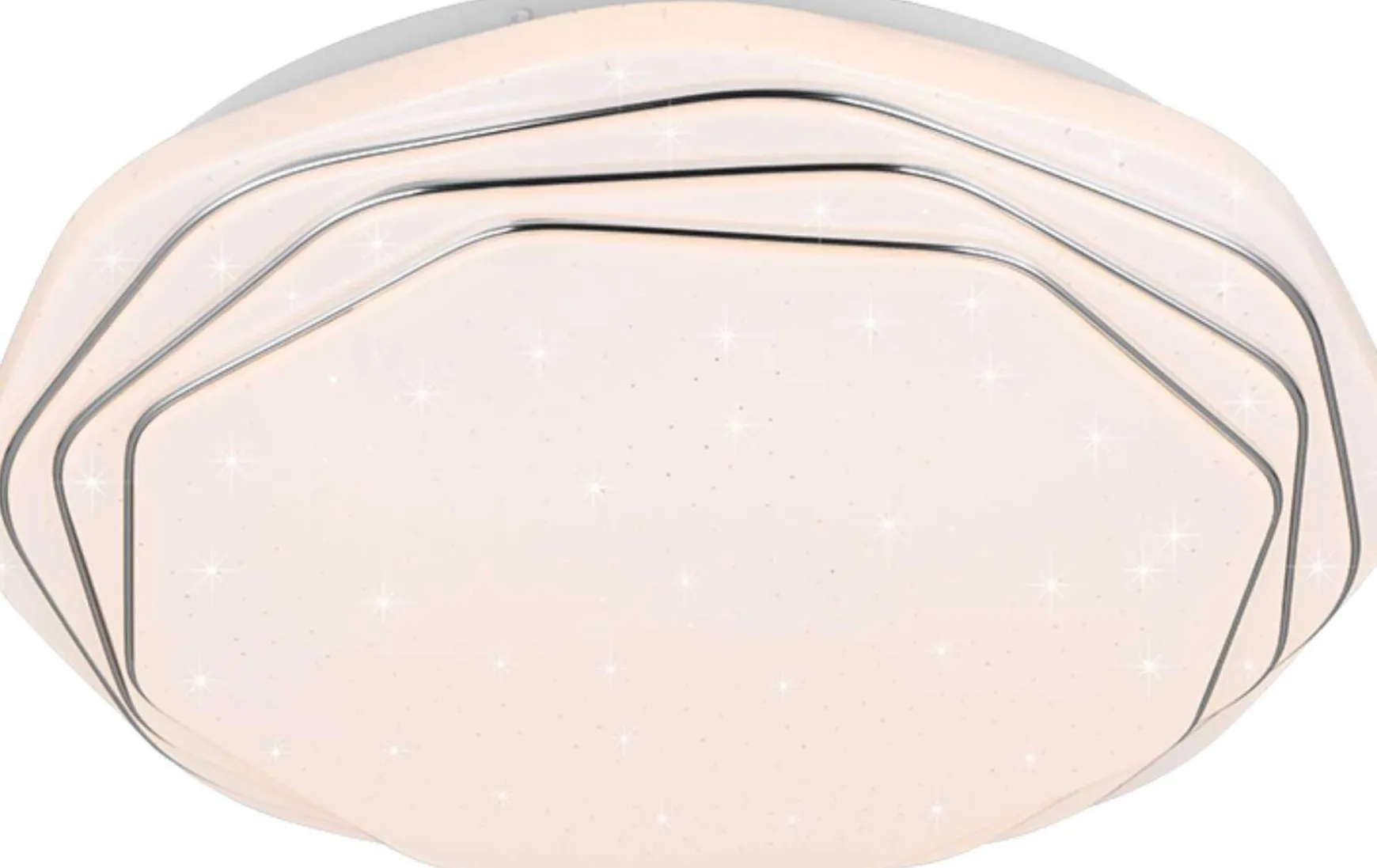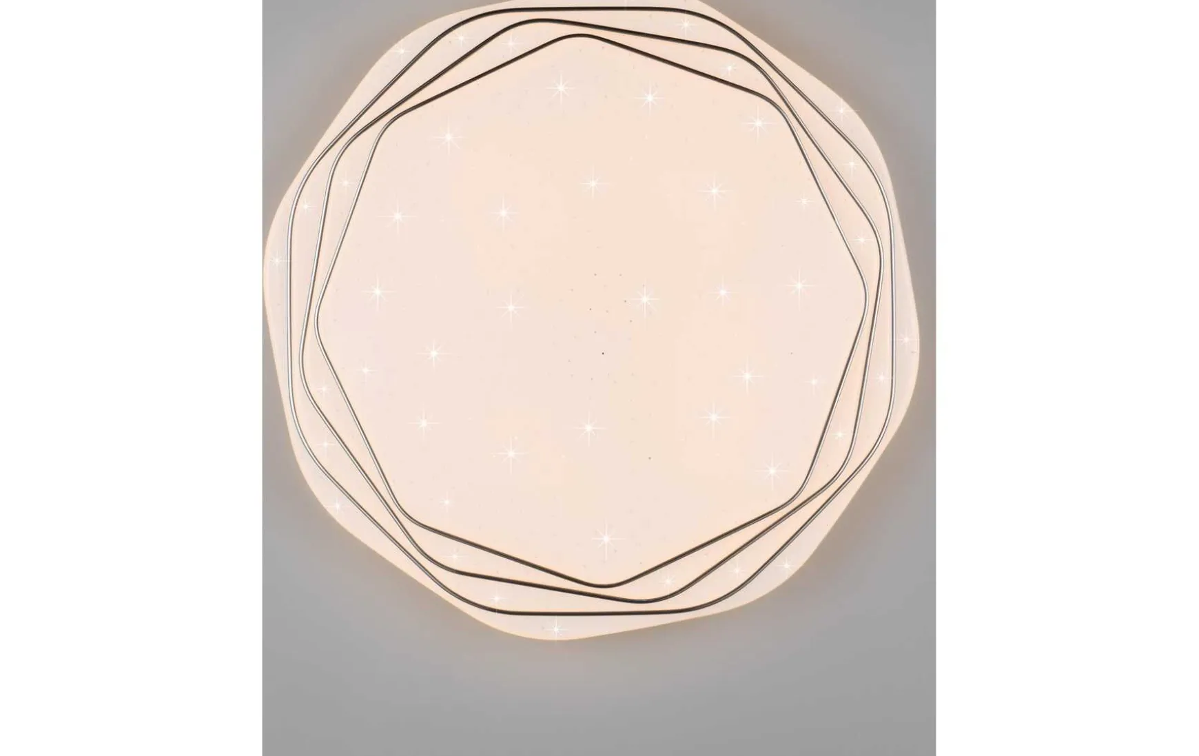 Diese Deckenleuchte beeindruckt mit einem faszinierenden 3D-Effekt, der durch die verschiedenen Stufen und Ebenen des Korpus entsteht. Diese außergewöhnliche Gestaltung macht DIZZY zu einem echten Highlight in jedem Raum. Mit der mitgelieferten Fernbedienung lassen sich zahlreiche Funktionen steuern, darunter die Einstellung von Helligkeit und Lichtfarbe sowie eine praktische Nachtlichtfunktion. Der Korpus der Leuchte ist mit einem eleganten Starlight-Effekt versehen, der für eine gemütliche und zugleich stilvolle Atmosphäre im Wohnzimmer oder Schlafzimmer sorgt. Die Farbgestaltung aus hochwertigem Kunststoff in Weiß und Chrom verleiht DIZZY einen modernen und edlen Look, der sich harmonisch in jede Einrichtung einfügt.