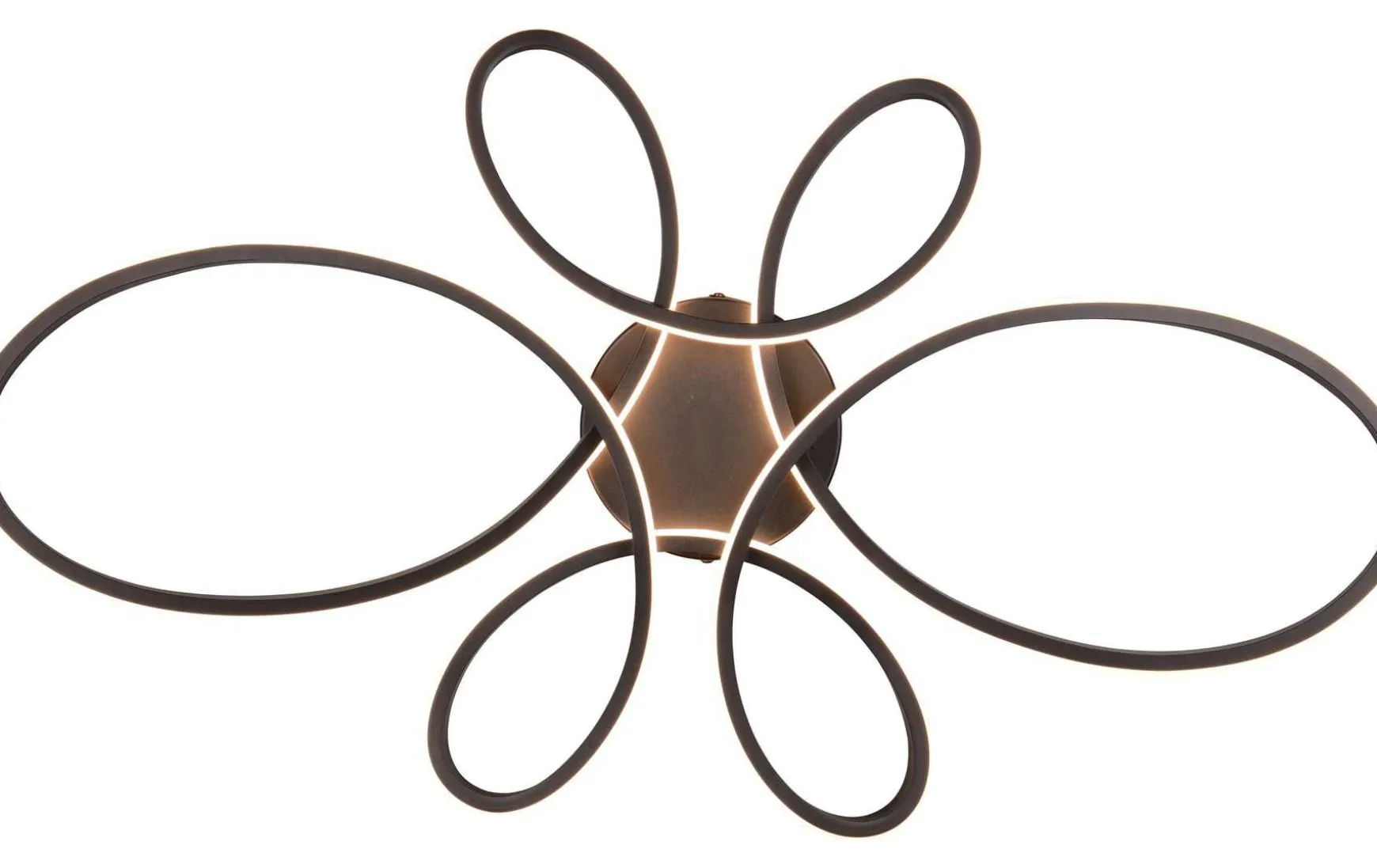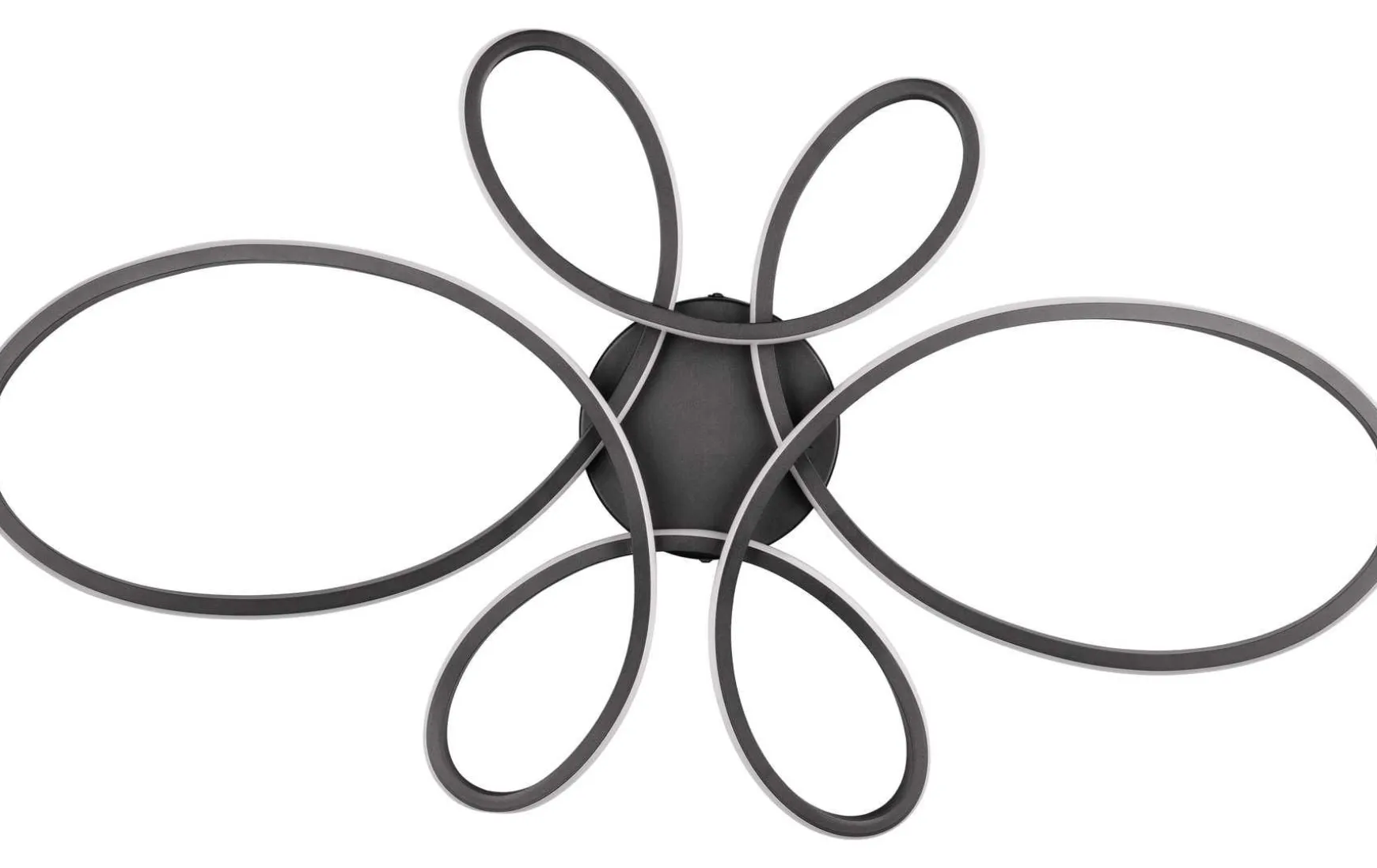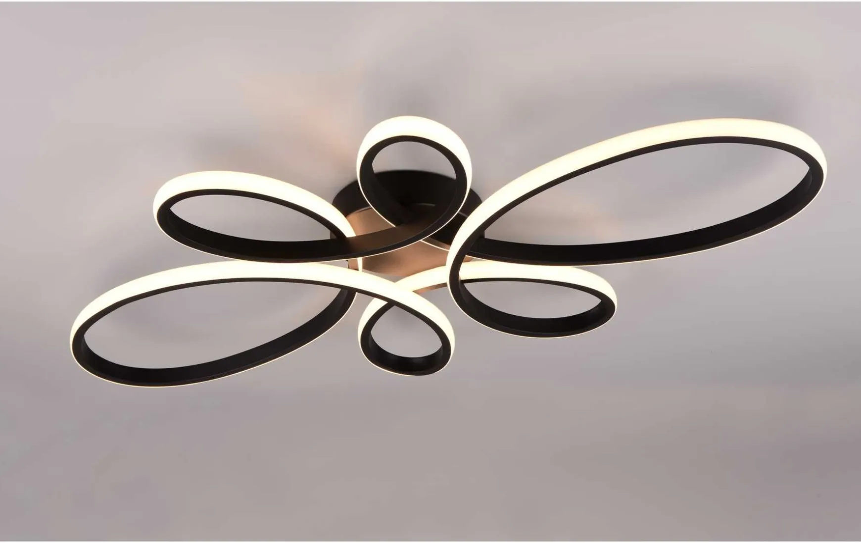 Die Kombination aus dem geschwungenen Design und einer schwarz matten Oberfläche verleiht der Deckenleuchte eine ganz besondere Note.