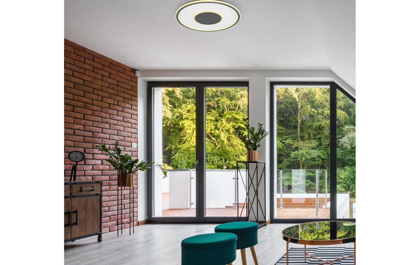 Die Deckenleuchte verfügt über inkludierte LED-Leuchtmittel, welche 2800 Lumen starkes Licht leisten.