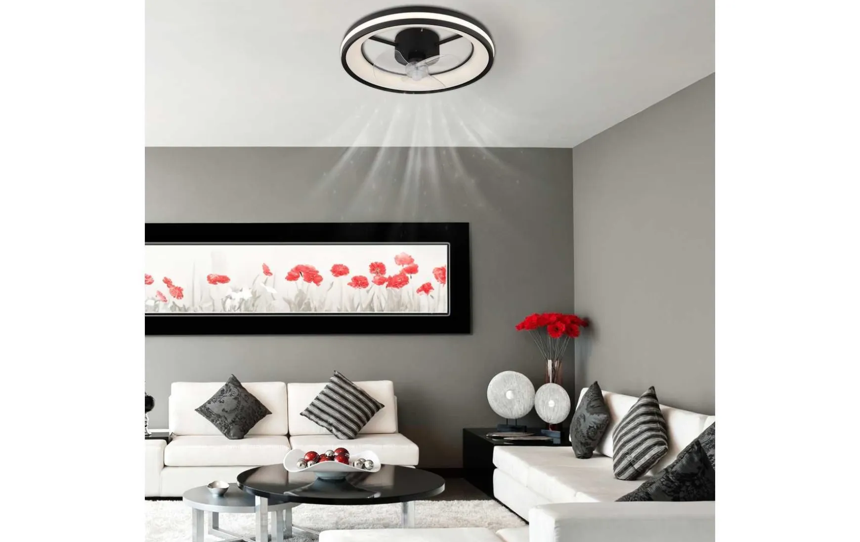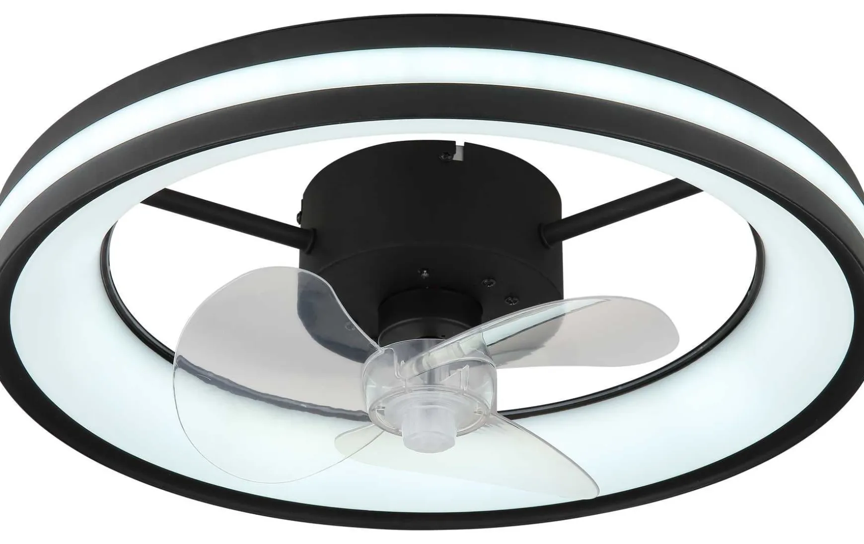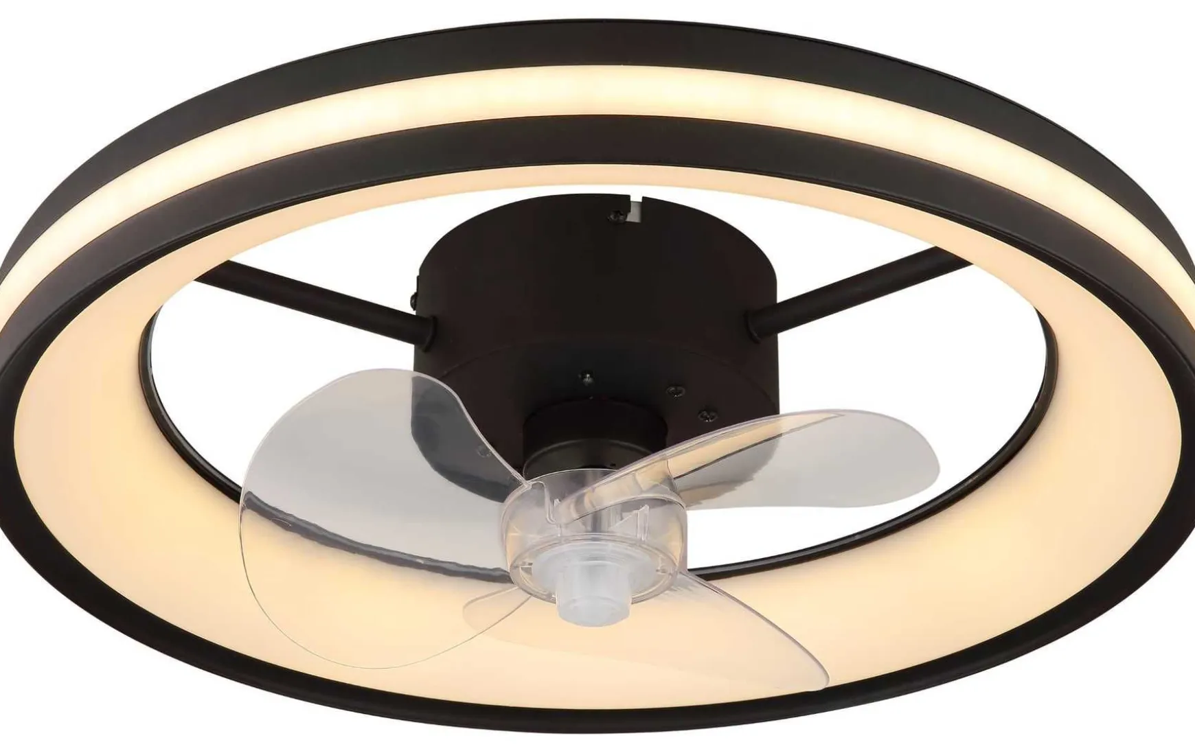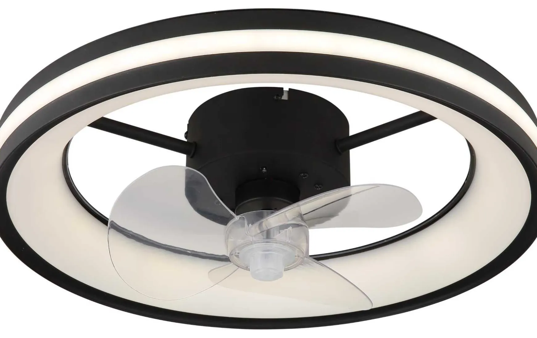Deckenventilator Metall schwarz matt, Kunststoff schwarz matt, Kunststoff opal, Kunststoff transparent, dimmbar, Farben fixierbar, Memoryfunktion, Timer, Fernbedienung, Batterie inkludiert 2x AAA, max. Motorleistung 20W, Abkühlung, ø: 500mm, H: 130mm, inkl. LED 30W 230V, 3000lm Source, 1950lm Output, CCT 2700-6500K