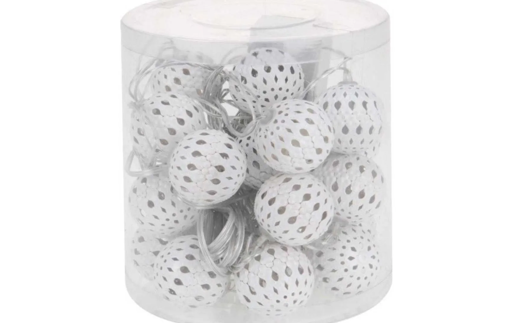 Verziert mit weißen Metallkugeln mit einem Durchmesser von 4 cm lässt sich jeder Raum in der Advents- und Weihnachtszeit mit gemütlichem, festlichem Licht dekorieren.