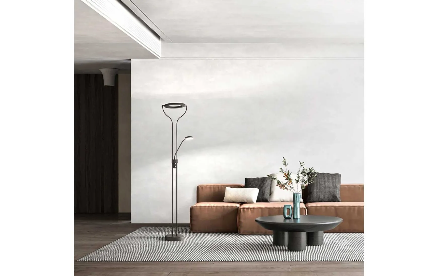 Flexibel und effizient. Das Licht zur Decke vergrößert optisch den Raum und bietet indirektes Licht für optimale Lichtverhältnisse. Das Licht des Leuchtenarms kann durch die Verstellbarkeit bedarfsgerecht ausgerichtet werden und somit steht einer guten Beleuchtung nichts mehr im Wege. Durch den integrierten Sensordimmer kann die Leuchte in 3 Stufen gedimmt werden und durch die CCT Technologie die Lichttemperatur über neutralweiß, tageslichtweiß und warmweiß den eigenen individuellen Bedürfnissen angepasst werden. Der Deckenfluter und der Arm lassen sich getrennt schalten. Finden sie in Gedanken schon einmal den richtigen Platz für diesen Fluter in nickelfarben matt/teilsatiniert. Ob im Flurbereich, neben dem Sofa oder ihrem Lieblingssessel einfach, oder auch gerne mehrfach platziert, peppen sie ihr Zuhause gekonnt auf. Ein Volltreffer in Sachen Verstellbarkeit und Funktion. Dimmbar in den Lichtfarben 2700 I 3350 I 4000K