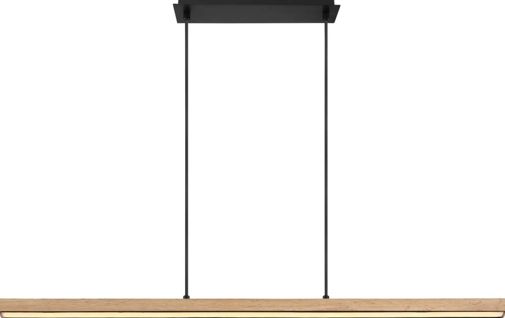 Hängeleuchte Metall schwarz matt, MDF holzoptik, Acryl opal, Kabel Textil Schwarz, Memoryfunktion, Rahmen in Eichenoptik, 3 Stufen über Wandschalter, LxBxH: 1010x75x1200mm, inkl. LED 30W 230V, 2400lm Source, 1150lm Output, 3000K