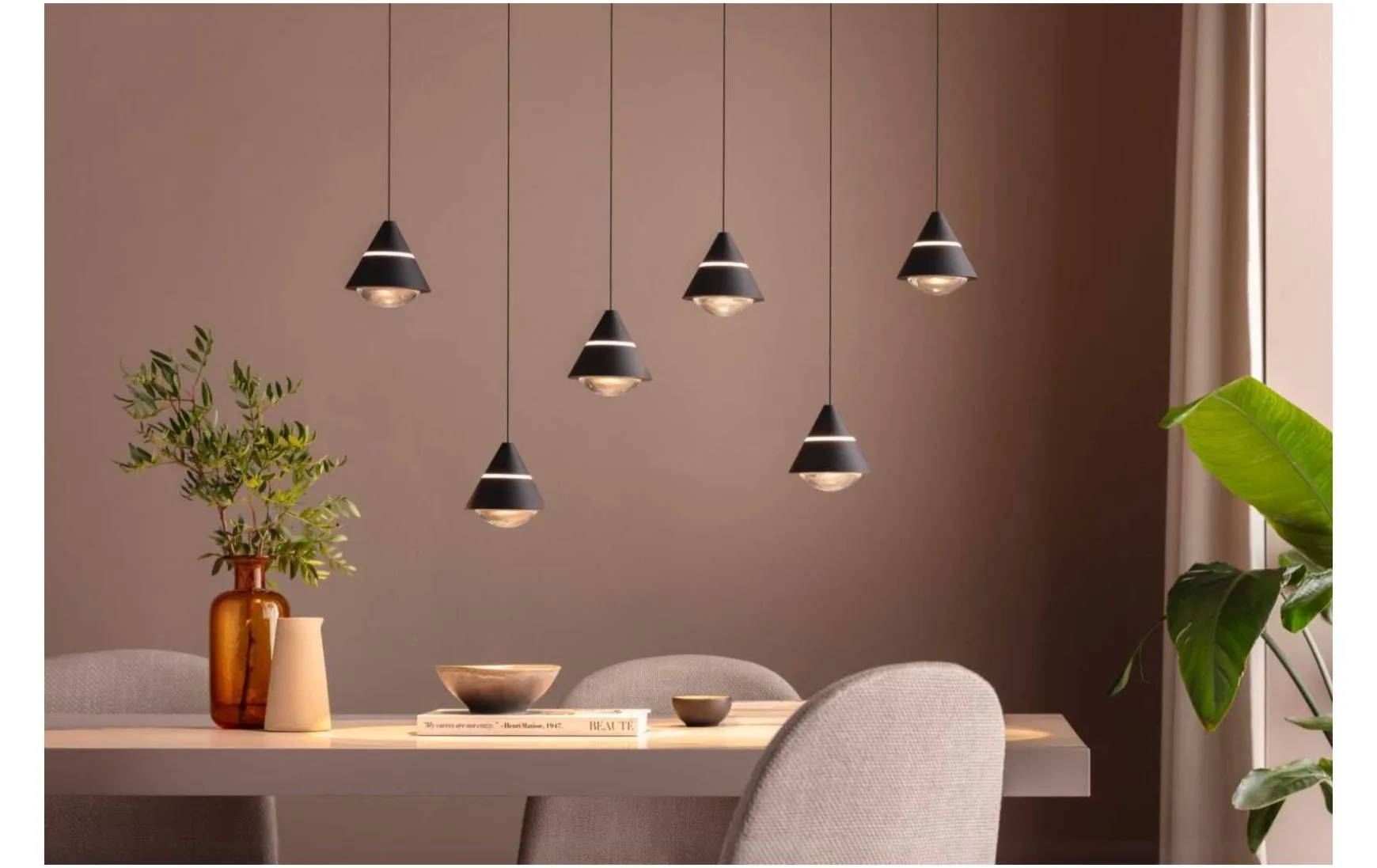 Mit sechs Lichtquellen sorgt die Leuchte für eine ausgewogene, großflächige Beleuchtung – perfekt für Wohn- und Essbereiche mit klarer Gestaltung.