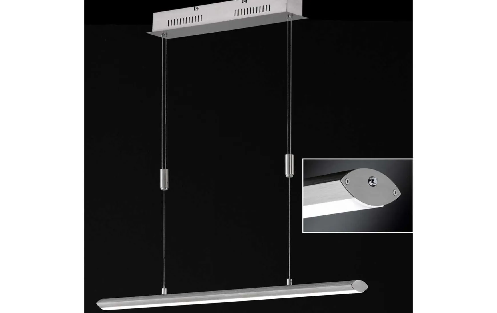 Mit dieser Pendelleuchte bekommen Sie eine stilvolle Beleuchtung für Ihre Räume, die sich flexibel an Ihren Esstisch anpassen kann. Die Leuchte ist aus Aluminium gefertigt und fügt sich in Aluminium- und Nickelfarben optimal in jedes Raumdesign ein. Ein Feature dieser Leuchte ist ihre Höhenverstellbarkeit. Die Pendelleuchte kann in der Höhe zwischen 100 und 160cm eingestellt werden und damit ideal an die Höhe des Esstisches angepasst werden. Ein Handgriff reicht aus, um die gewünschte Höhe einzustellen. Durch die längliche Form wird das Licht gleichmäßig über dem Tisch verteilt. Damit Sie es sich in den Abendstunden richtig gemütlich machen können, ist an der Pendelleuchte ein Taster angebracht, über den Sie die Leuchte stufenlos dimmen können. Die CCT Farbtechnologie kombiniert warmweißes und kaltweißes Licht, das in drei Stufen einstellbar ist. Die Leuchte ist aus Aluminium gefertigt und kombiniert die Farbe des Metalls mit Nickelfarben matt. Durch dieses edle Design integriert sich die Leuchte in jeden modernen Wohnraum.