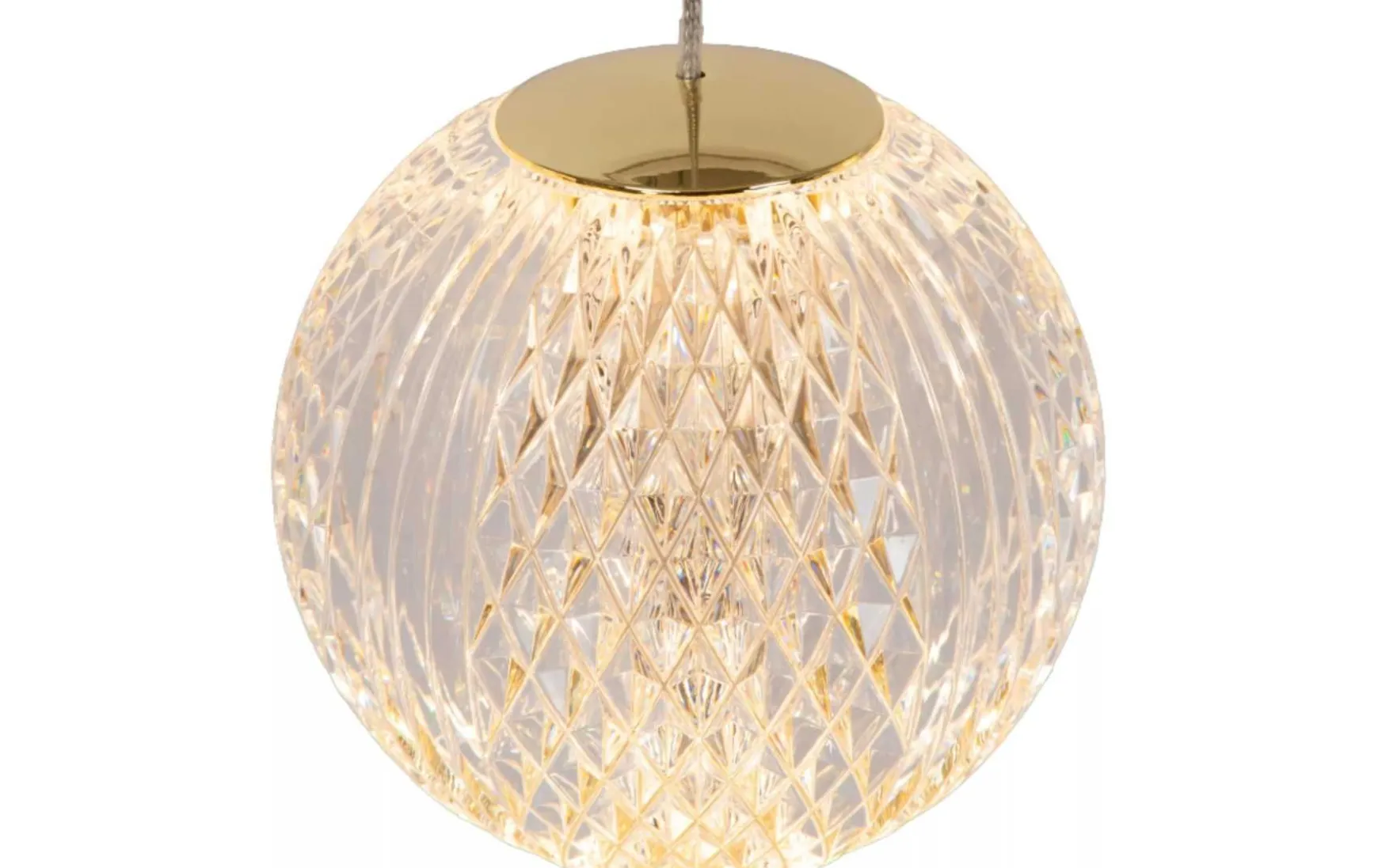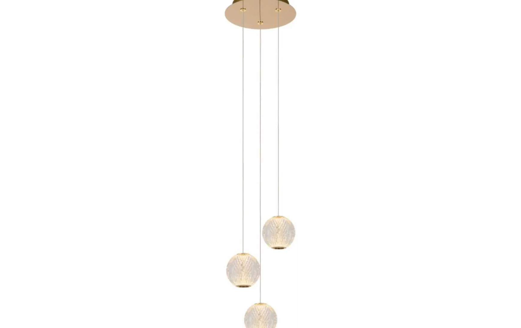 Eine verspielte Pendelleuchte, die gleichzeitig stilvoll aussieht. Die transparenten Lampenschirme aus hochwertigem Acryl vermitteln den Eindruck von echtem Kristall. Die 11 x 11 x 9,8 Zentimeter großen Lampen hängen in jedem Raum zierlich: über dem Esstisch, im Wohnzimmer oder im Schlafzimmer. Die 3 Pendel sind in der Höhe verstellbar. Sie können sie zwischen 50 und 150 Zentimetern einstellen, um diese stilvolle Leuchte optimal an das jeweilige Interieur anzupassen. Die Kabel gehen von der 25 x 25 x 3,6 Zentimeter großen Montageplatte aus Messing hervor. Genießen Sie die integrierten dimmbaren LED-Birnen als zusätzliches Extra.