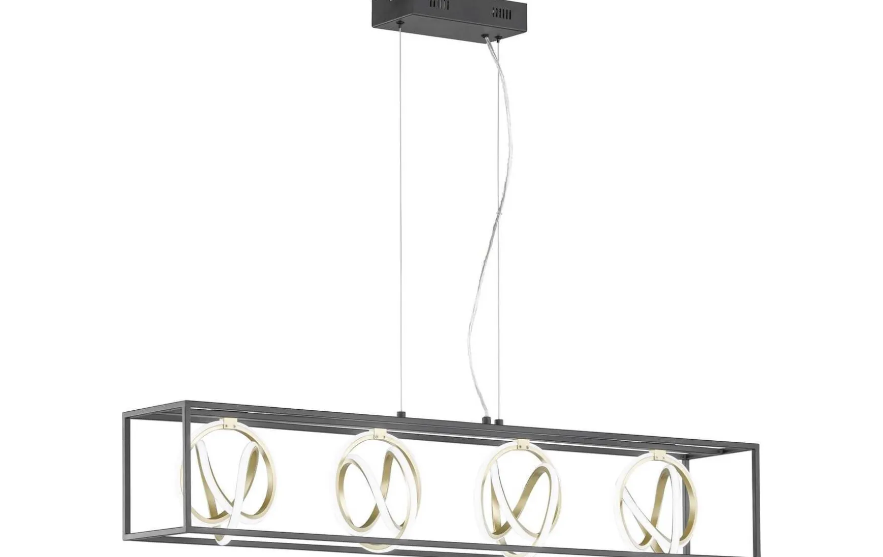 Diese LED-Deckenleuchte ist eine schwarze moderne Hängelampe mit vier Lichtpunkten. Sie ist ein Hingucker in jedem Zuhause und kommt besonders gut über dem Esstisch zur Geltung.