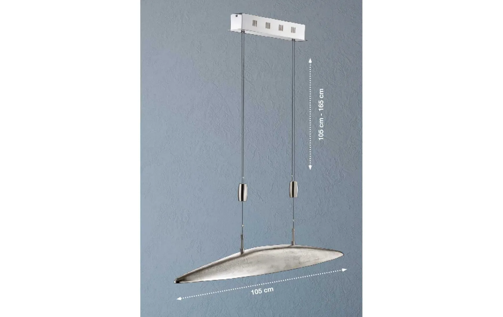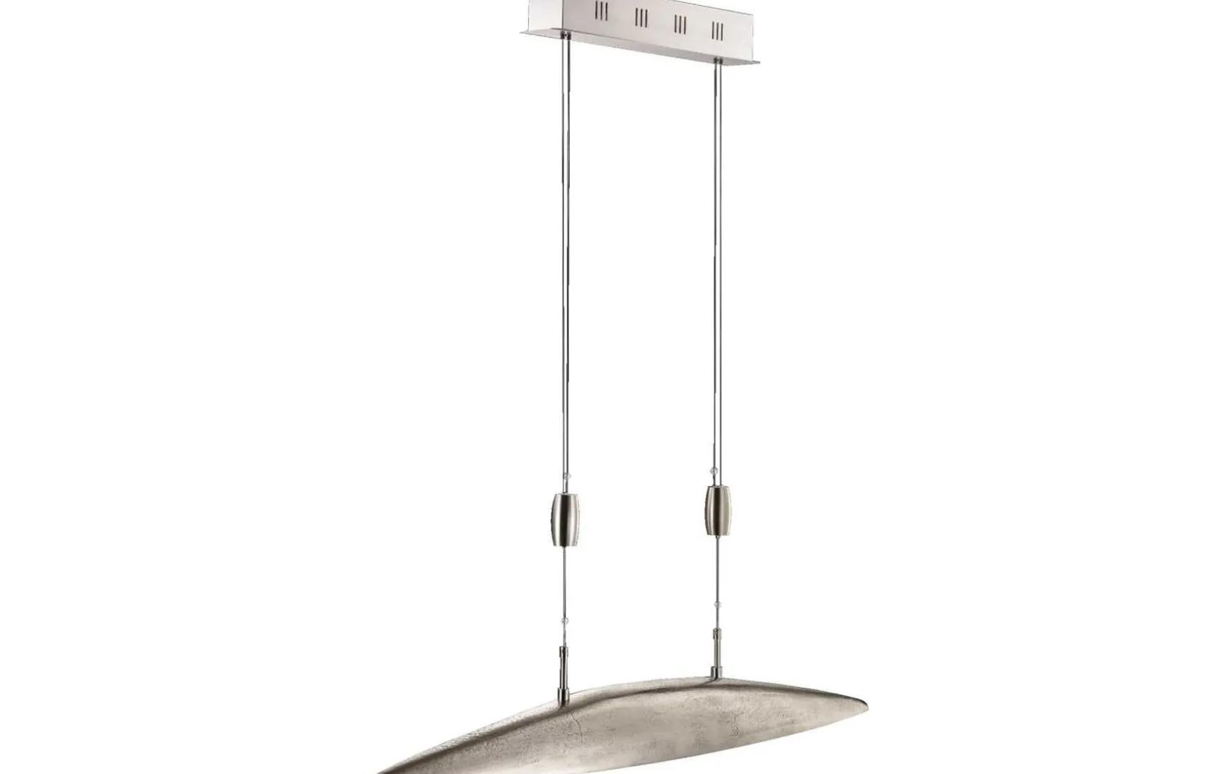 Diese Pendelleuchte überzeugt stilistisch mit einer langgezogen, abgrundeten Formgebung, die an einen windschnittigen Schiffs- oder Bootskörper erinnert.