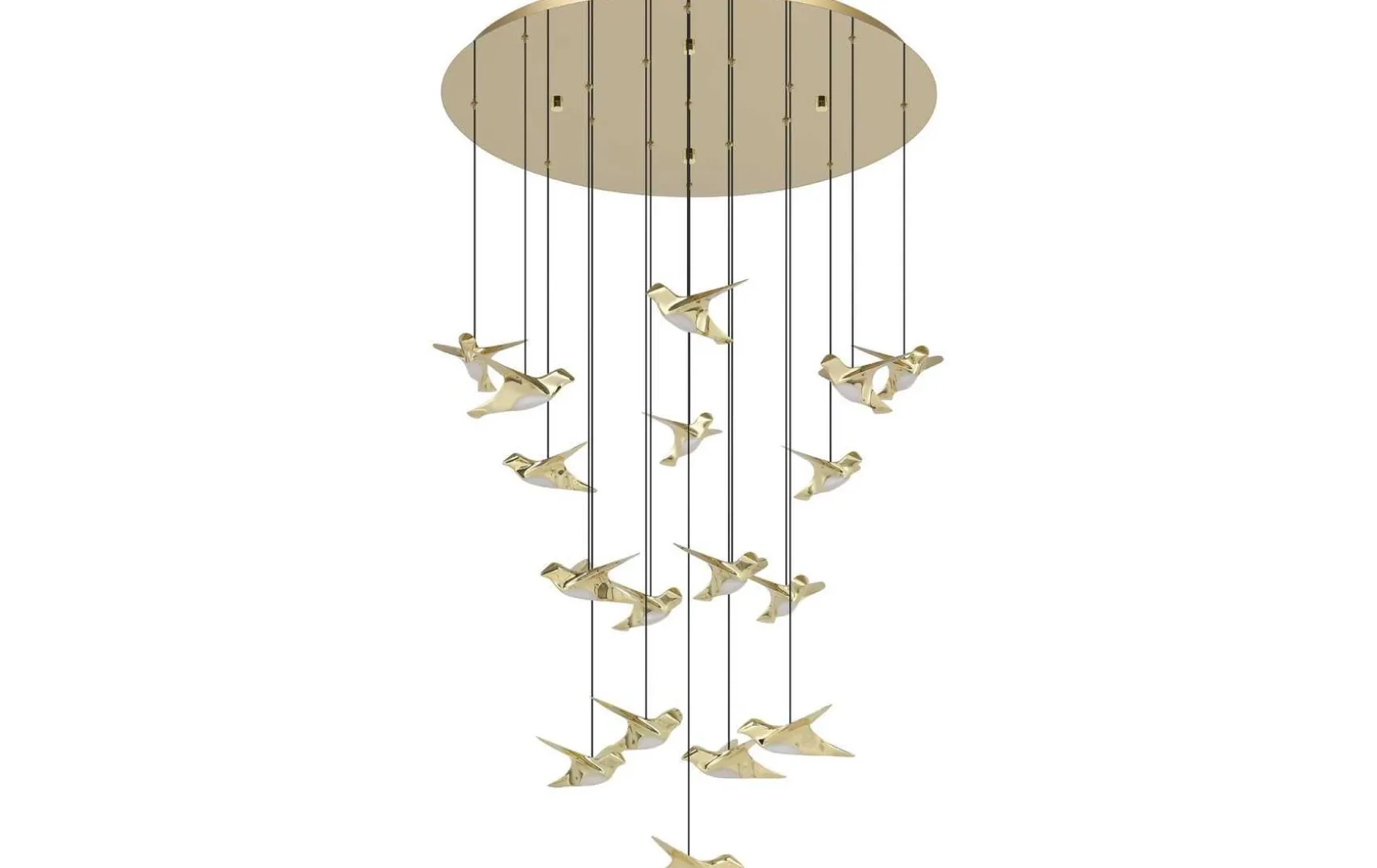 Die integrierten LEDs am Bauch der Vögel spenden angenehmes warmweißes Licht und sind über einen passenden Drehdimmer an der Wand dimmbar.