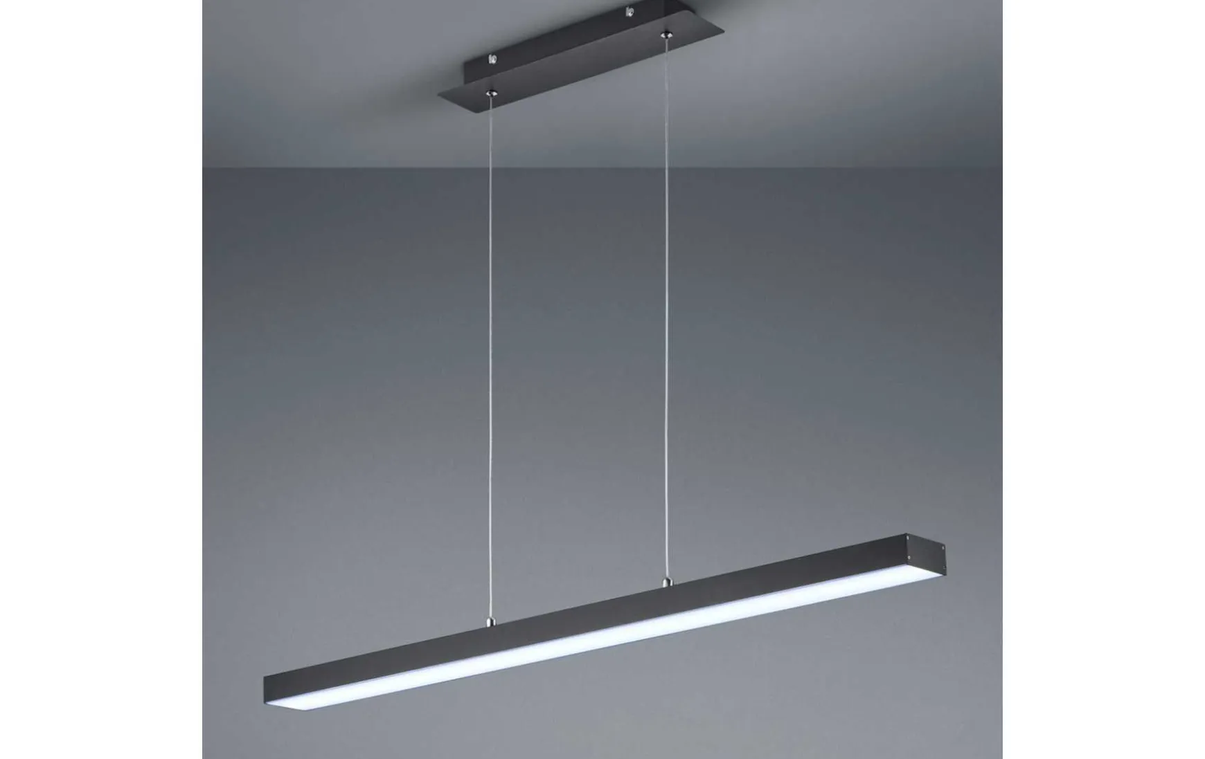 Diese Pendelleuchte überzeugt mit einem geradlinigen und modernen Design und schafft damit einen stilvollen Blickfang in Ihrem Zuhause. Die Leuchte gibt ein sanftes Licht ab und passt sich durch die schlichte Farbgebung perfekt modernen Einrichtungsstilen an. Für eine optimale Anpassung an verschiedene Lichtverhältnisse können die Helligkeit und Lichtfarbe der Lampe stufenweise eingestellt werden. Die Regulierung erfolgt über zwei Touch-Punkte auf der Oberseite des Pendels, so dass diese vom Tisch aus bequem zu bedienen sind. Für die Leuchte finden sich eine Reihe unterschiedlicher Anwendungsbereiche, vor allem aber im Essbereich, über einem länglichen Esstisch ausgerichtet kommt sie wunderbar zur Geltung. Die Leuchte ist in einem modernen Schwarz matt gehalten und lässt sich stilvoll in verschiedene Wohn- und Farbkonzepte integrieren. Darüber hinaus verfügt die Leuchte über eine moderne LED Technologie, die sich durch eine hohe Lichtqualität und Energieeffizienz auszeichnet. Im Vergleich zu herkömmlichen Halogen Leuchtmitteln lassen sich bis zu 80% der Energiekosten sparen. Zusätzlich haben LED Lichtquellen eine lange Lebensdauer, produzieren weniger Wärme und schonen die Umwelt.