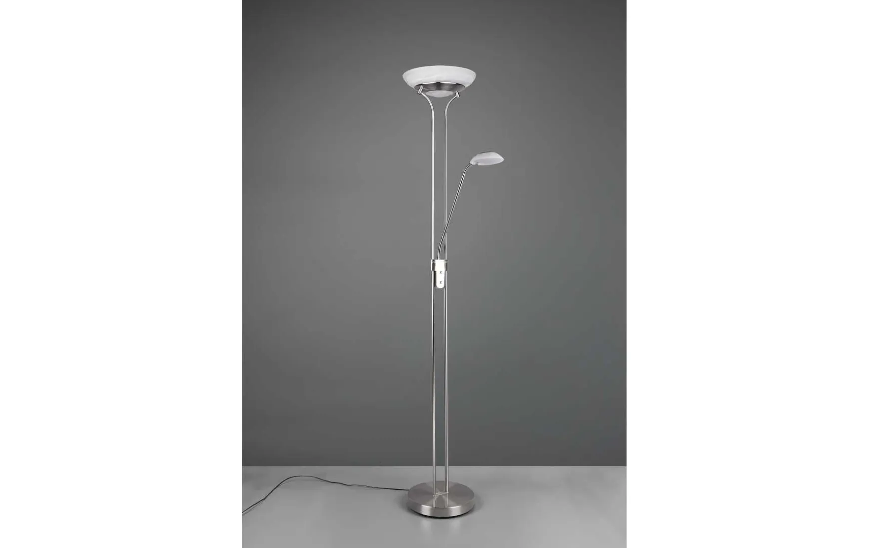 Deckenfluter und Lesearm sind getrennt voneinander schaltbar und lassen sich stufenlos dimmen.