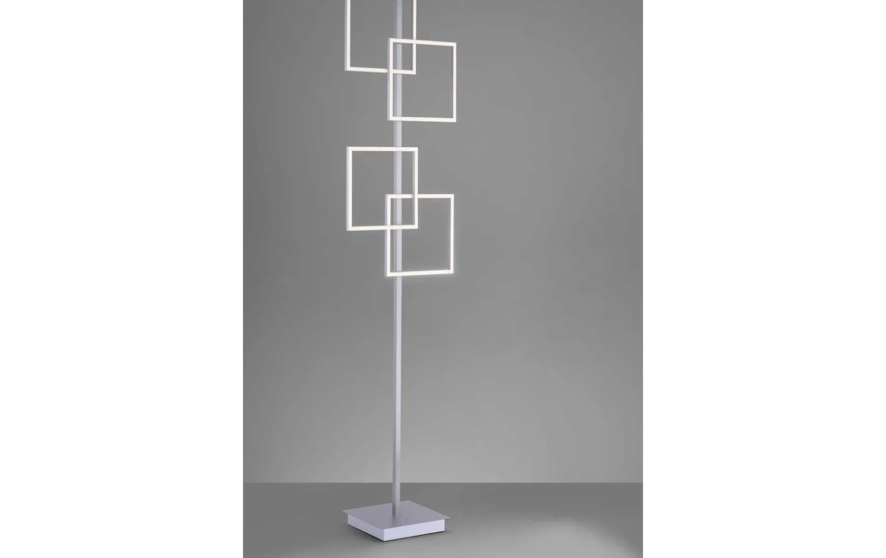 Moderne Stehleuchte mit 4 Quadraten, inkl. Fußschalter, dimmbar per IR-Fernbedienung, Memory Funktion, Länge 40 cm, Höhe 165 cm, Breite 25 cm, inkl. 4x LED Board 8 Watt / 880 Lumen, CCT Einstellung 2700-5000K, 833365, EEK Klasse F