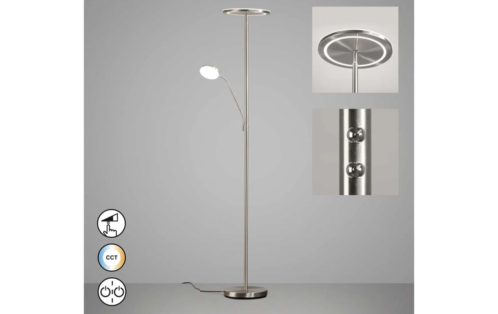 Lesearm und Fluter lassen sich getrennt über einen Sensordimmer schalten.