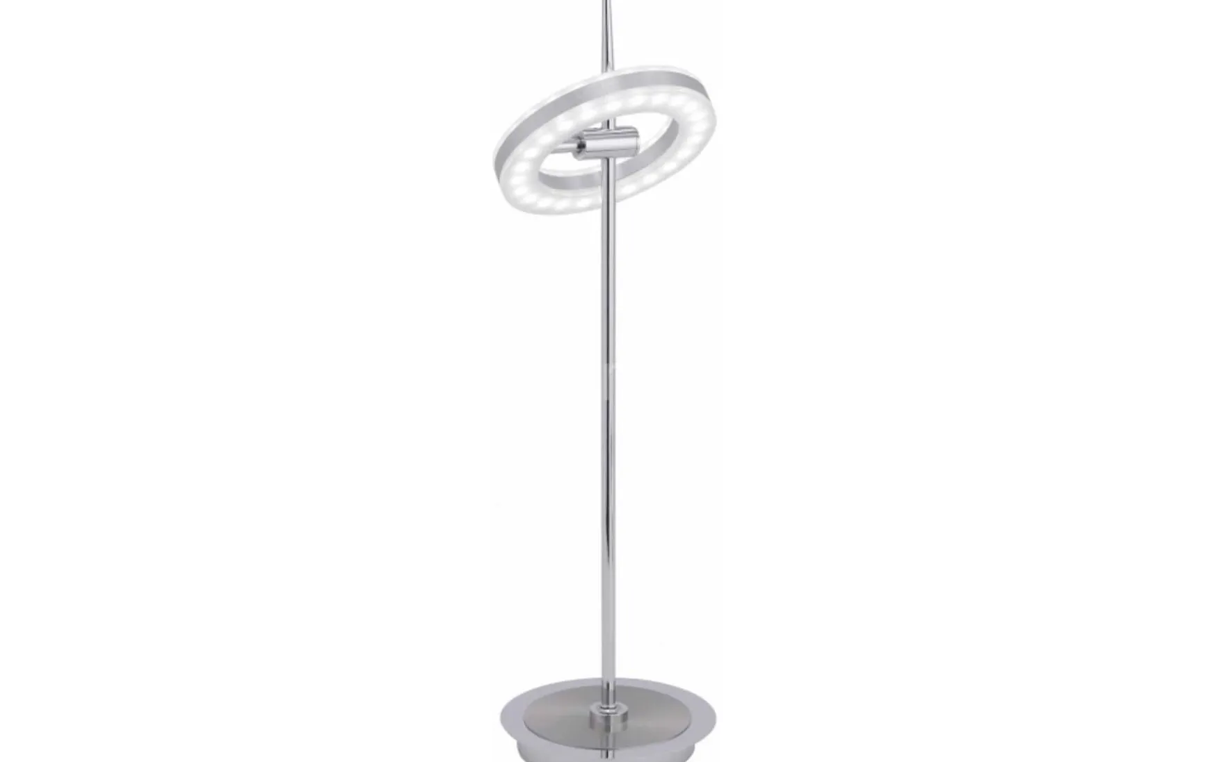 Diese LED-Tischleuchte besticht durch ihr futuristisches Chrom/Stahl-Design. Die ringförmig gestalteten Leuchtenköpfe sind dreh- und schwenkbar und verfügen über beidseitig abstrahlende LED-Boards mit CCT-Lichtsteuerung. Sie lassen sich stufenlos von warmweiß (2.700 Kelvin) bis tageslichtweiß (5.000 Kelvin) steuern und ohne Veränderung der Farbtemperatur dimmen.