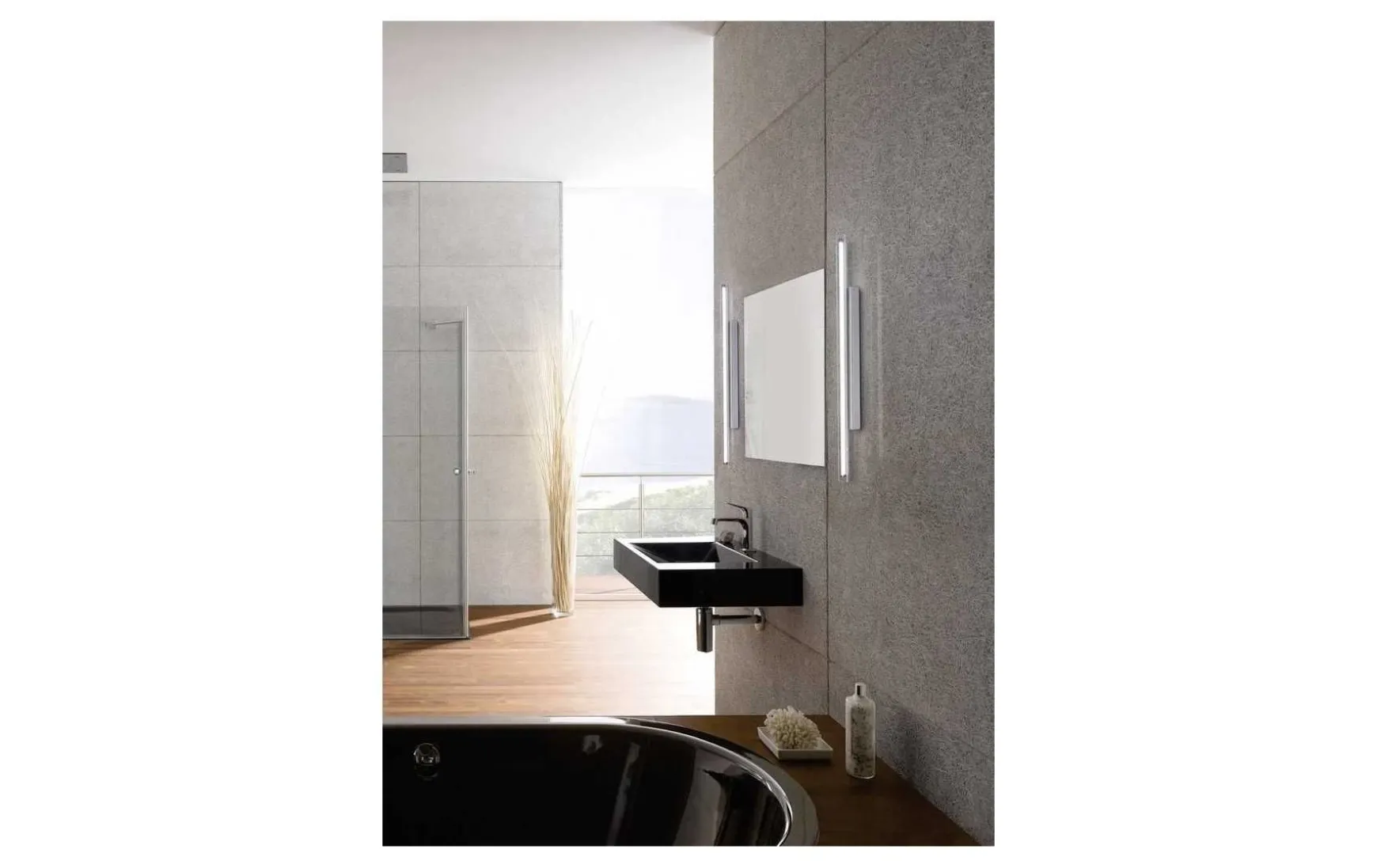 Diese chromfarbene LED Wand- und Spiegelleuchte überzeugt mit schlichter Eleganz.