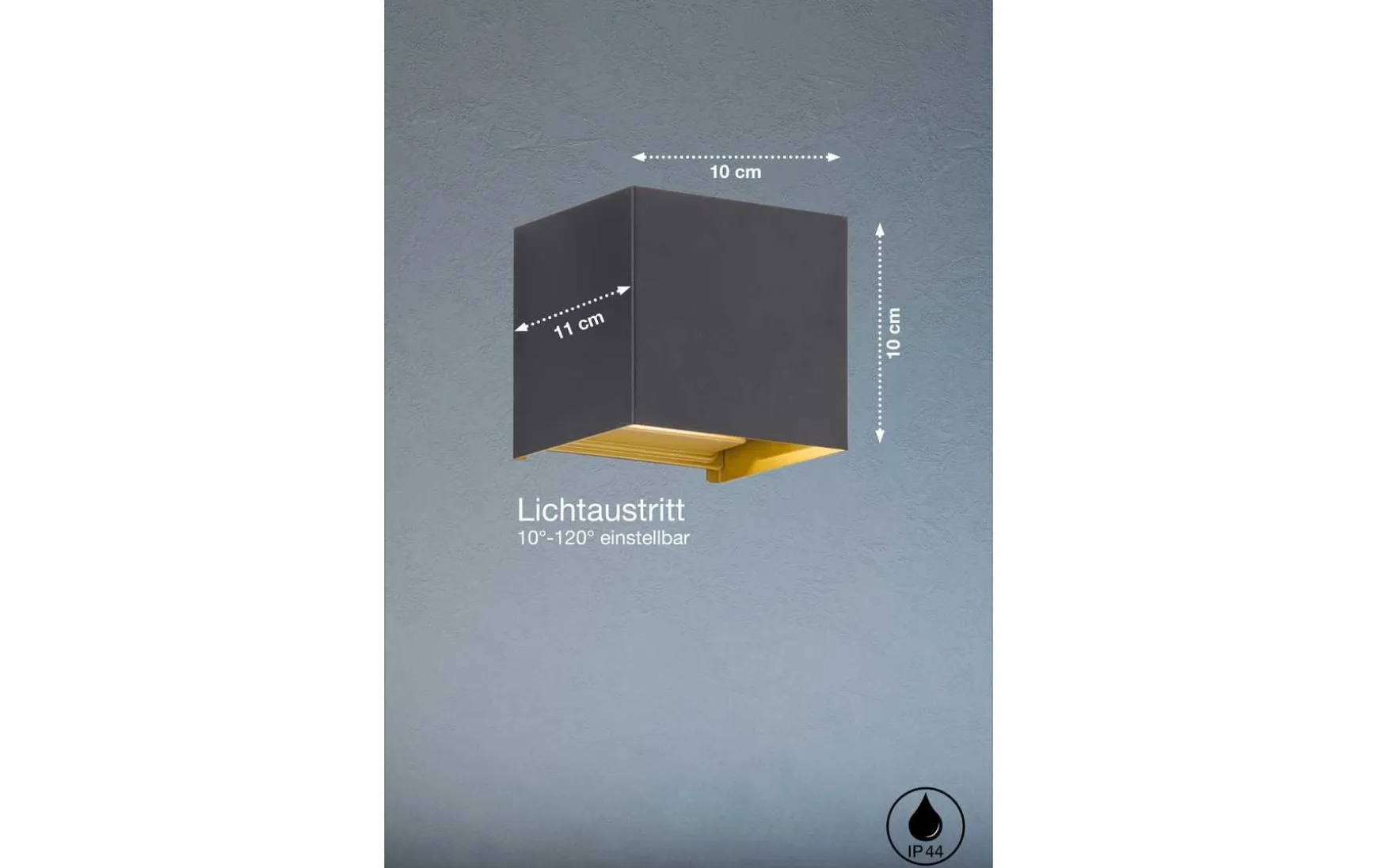 Diese LED Wandleuchte ist eine schwarze, würfelförmige Leuchte.