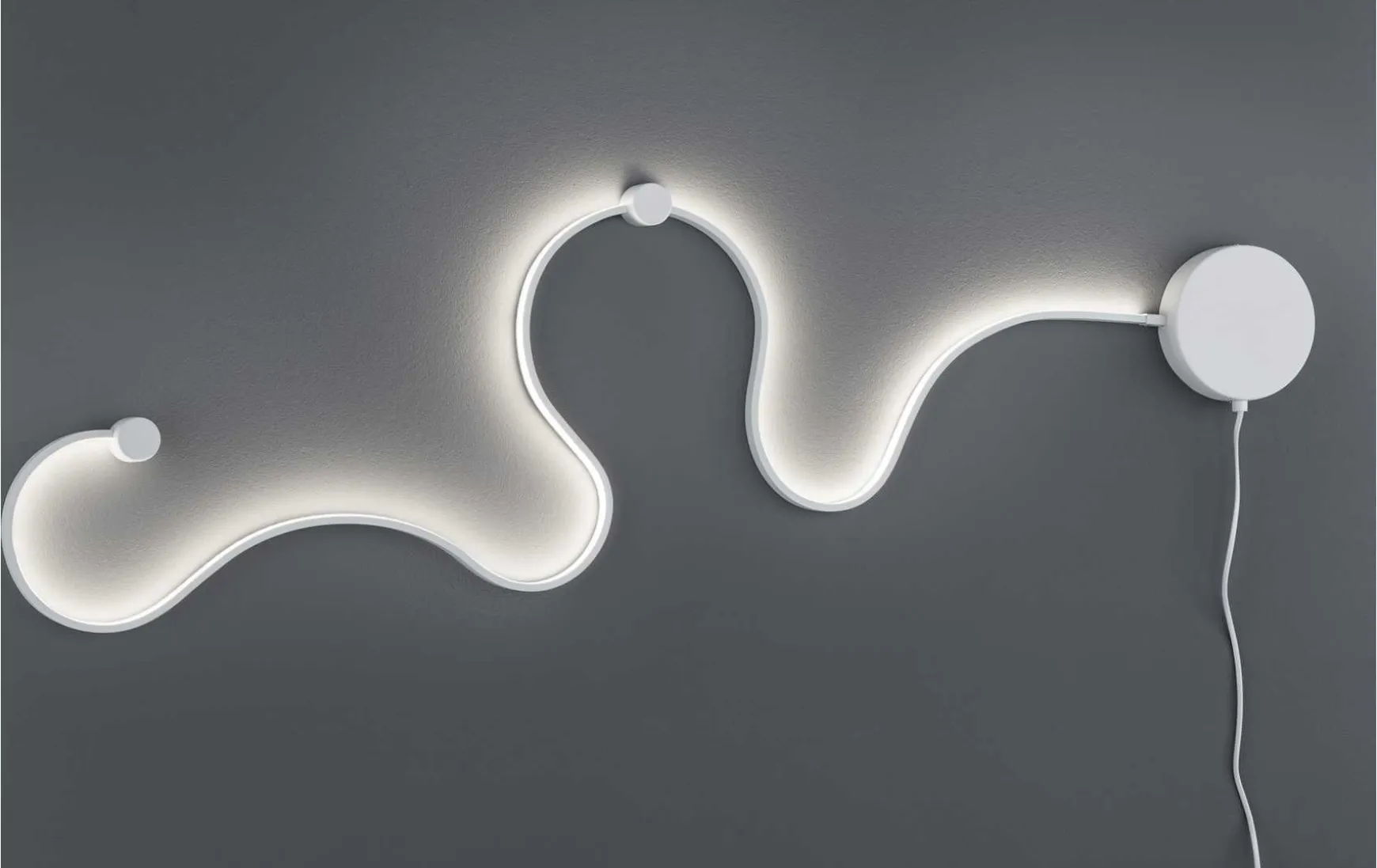 Diese anmutige Wandleuchte ist aus gebogenem Stahl gefertigt und mit Acryl kombiniert. Die Leuchte hat eine feste Form und die integrierten LEDs geben ein schönes, gleichmäßiges warmweißes Licht ab. Die Leuchte ist mit einer Stufendimmfunktion ausgestattet. Mit dem Schalter am Kabel kann die Leuchte in drei verschiedenen Helligkeitsstufen brennen. Diese Wandleuchte spendet nicht nur Licht, sondern dient auch als auffällige moderne Wanddekoration, leuchtende Wanddekoration, kurz gesagt, als Blickfang.