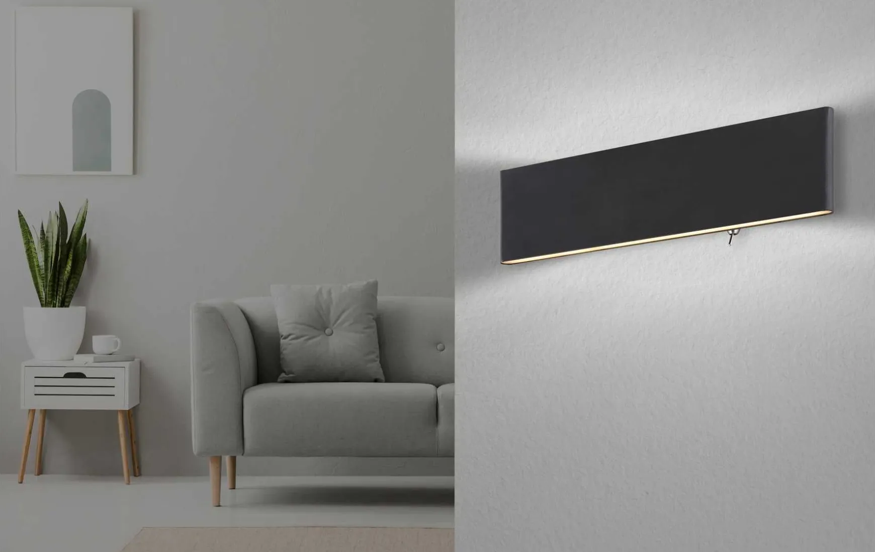 Wandleuchte Aluminium schwarz, Acryl opal, weiß, Kippschalter, Richtung Lichtschein: auf- und abwärts, BxH: 295x80mm, AL: 45mm, inkl. LED 12W 230V, 1400lm Source, 380lm Output, 3000K