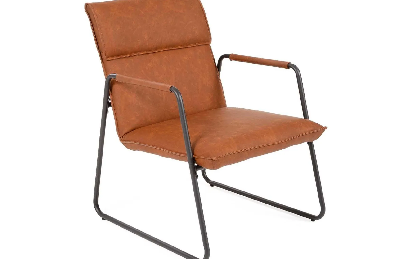 - Loungestuhl mit braunem Stoffbezug in Lederoptik