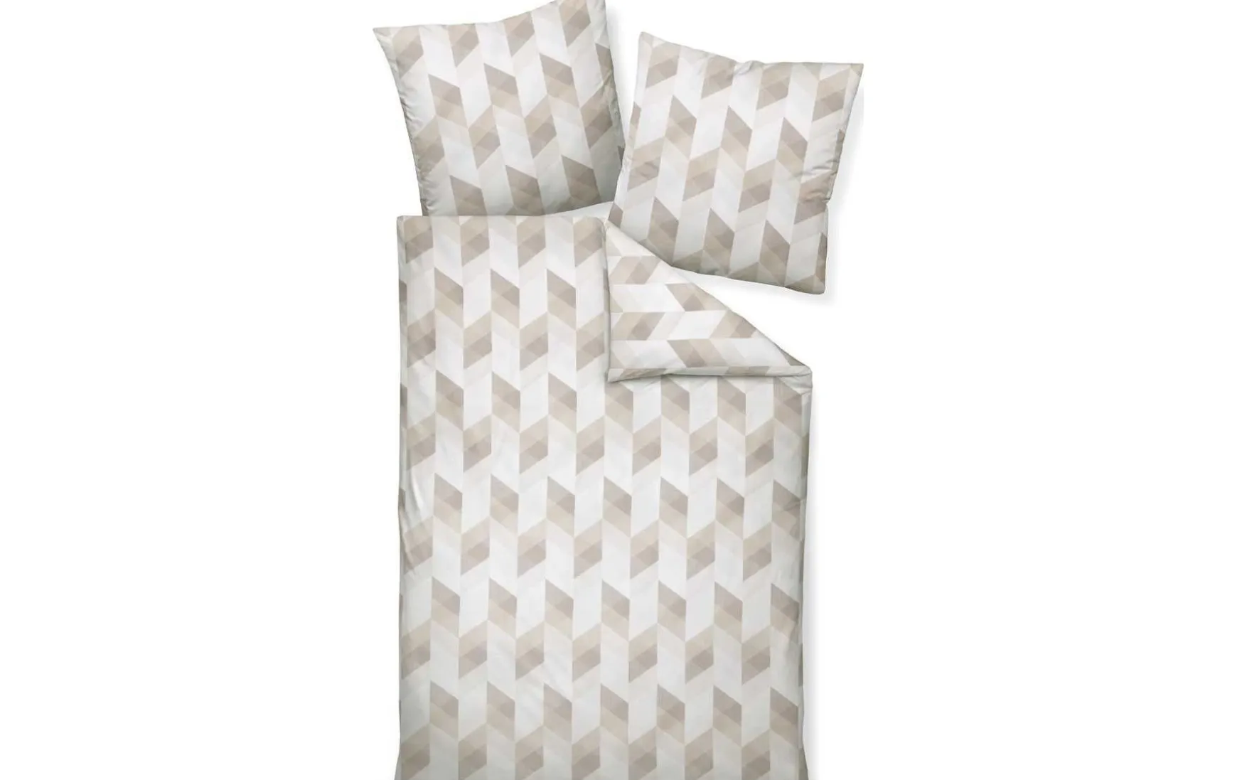 Die Bettwäsche-Garnitur aus 100% Baumwolle ist bestehend aus 1x Polster- 70x90cm und 1x Bettdeckenüberzug 140x200cm mit grafischen Rauten.