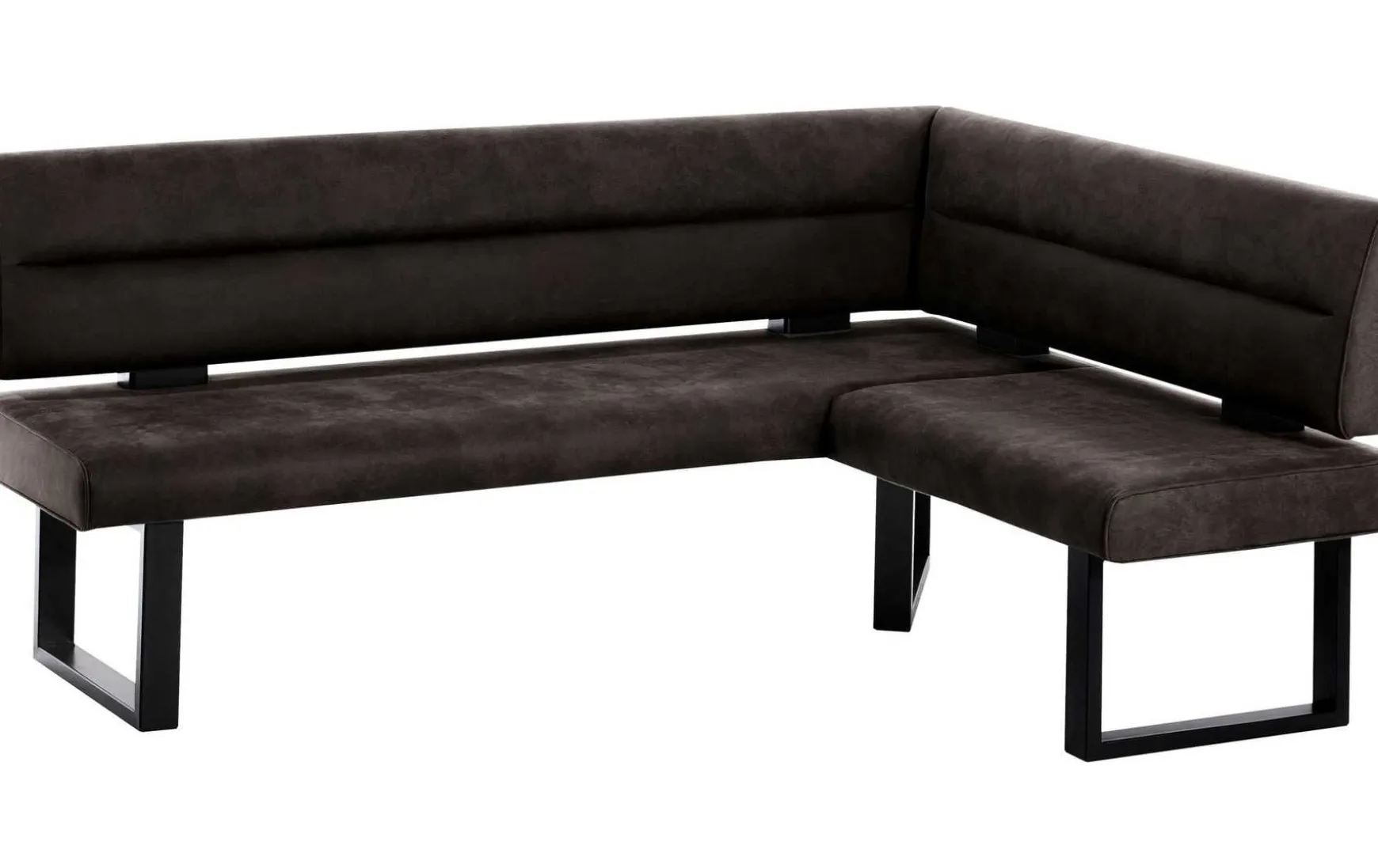 Diese Eckbank bietet entspannten Komfort und modernes Design. Mit ihrem Kufengestell aus schwarzem Eisen bringt die klassische Eckbank ins `Hier und Jetzt`. Der pflegeleichte Microfaserbezug in Anthrazit besitzt eine angenehme Haptik. Ein mittig gesetzter Abnäher verleiht Struktur.