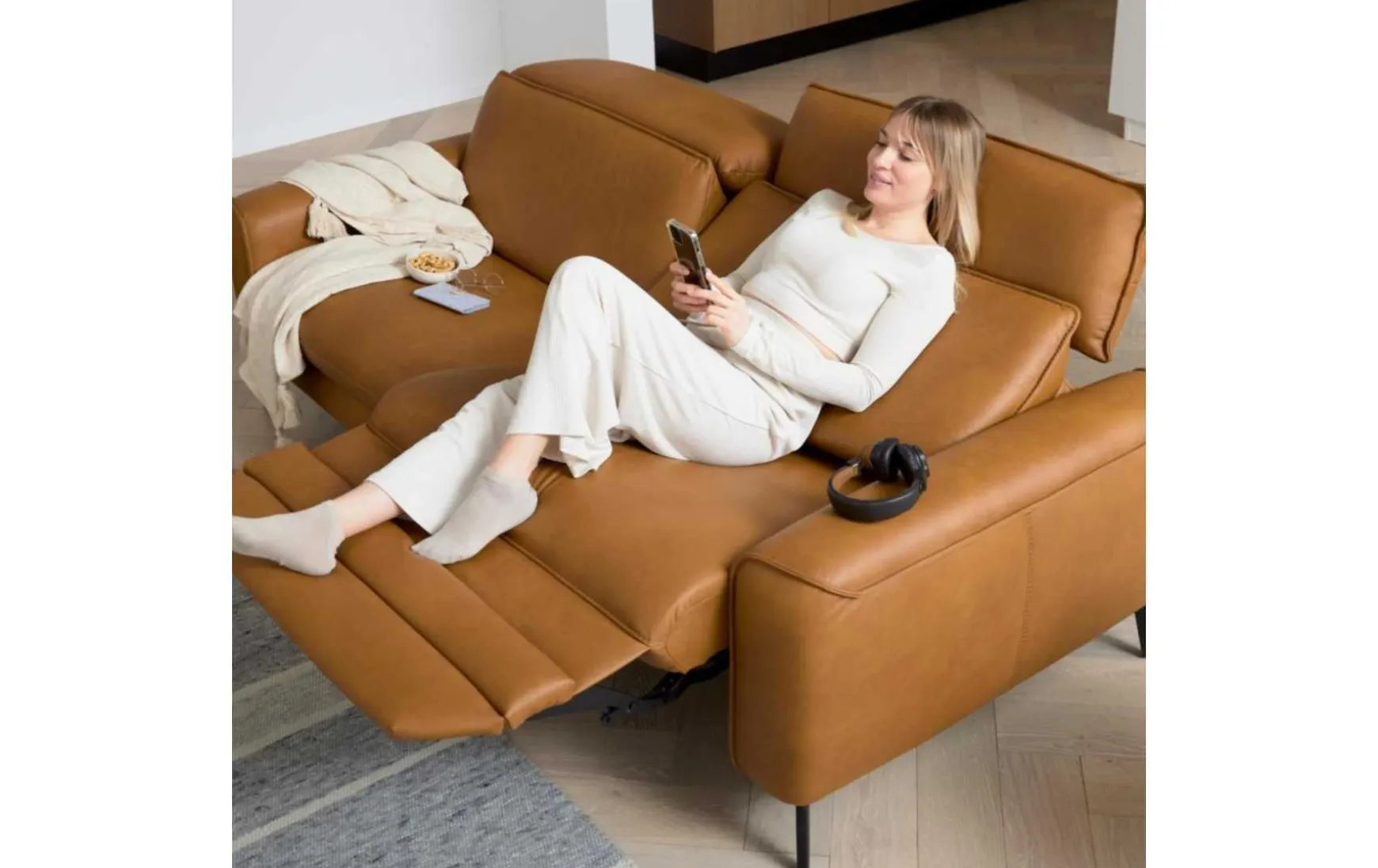 Erleben Sie den Hauch von Luxus und Stil mit diesem herausragenden 2,5-Sitzer, der mit einem lebendigen Lederbezug und markanten Metallfüßen in tiefem Schwarz beeindruckt. Diese Kombination aus kraftvollen Farben und modernem Design verwandelt jeden Raum in eine Oase der Eleganz und des Komforts.