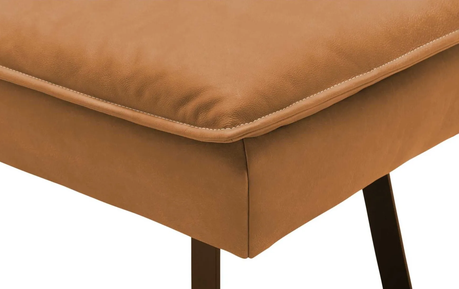 Sorgfältig verarbeitete Materialien, höchster Komfort und ein Design, das sofort ins Auge fällt. Zwei luftig designte, mattschwarze Metallkufen tragen die Hockerbank zuverlässig und geben ihr ein schwereloses Aussehen. Nehmen Sie auf den dicken Polstern Platz und machen Sie es sich gemütlich. Dank der Kombination aus hochwertigen Polsterunterkonstruktionen sitzen Sie lange bequem. Der Bezug aus echtem Büffelleder ist dezent abgesteppt und mit einem dekorativen Kontrastfaden verziert. Eine Kedernaht betont die Linienführung der Sitzpolster gekonnt und setzt liebevolle Akzente.
