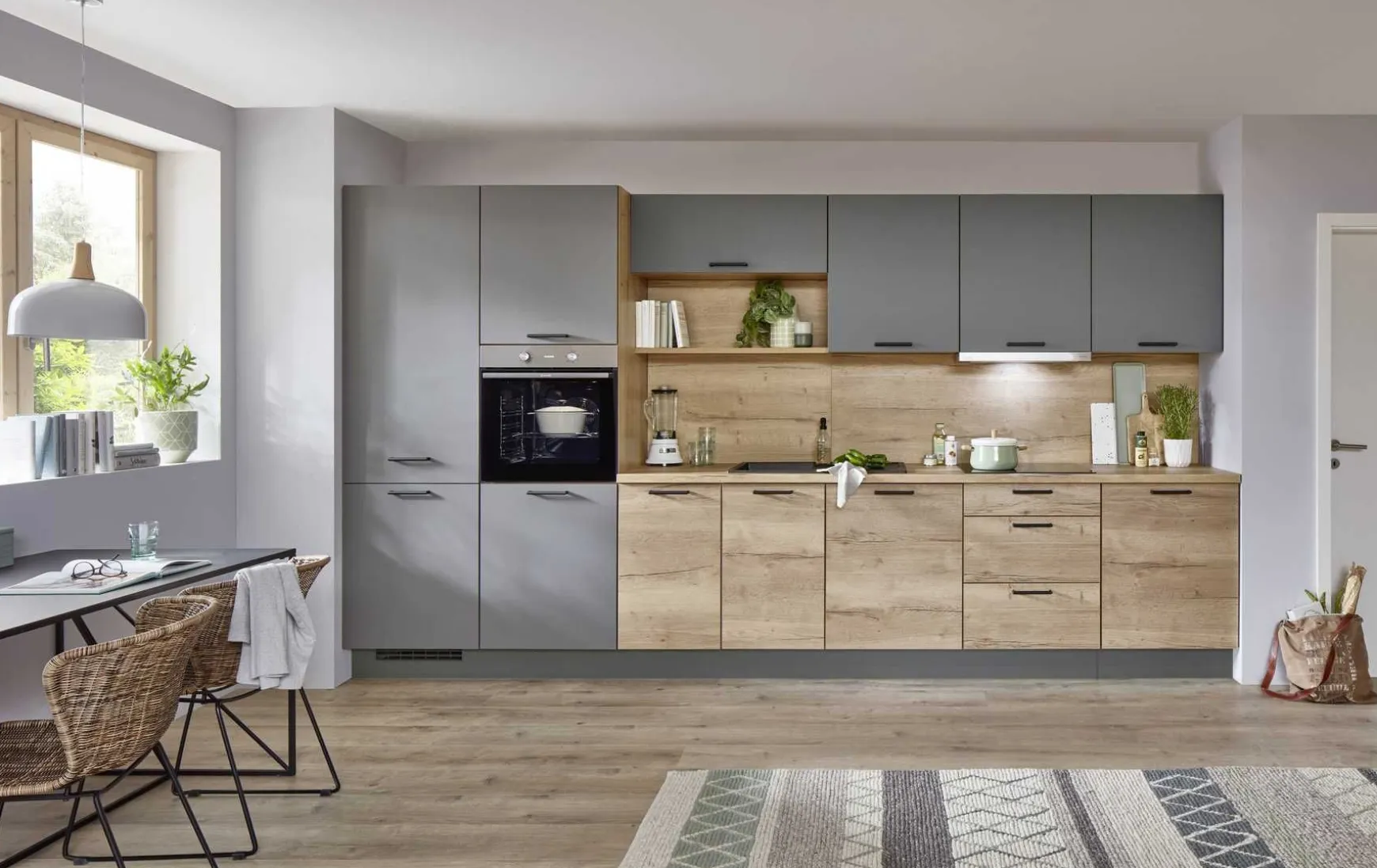- Front: Steingrau supermatt, Eiche San Remo