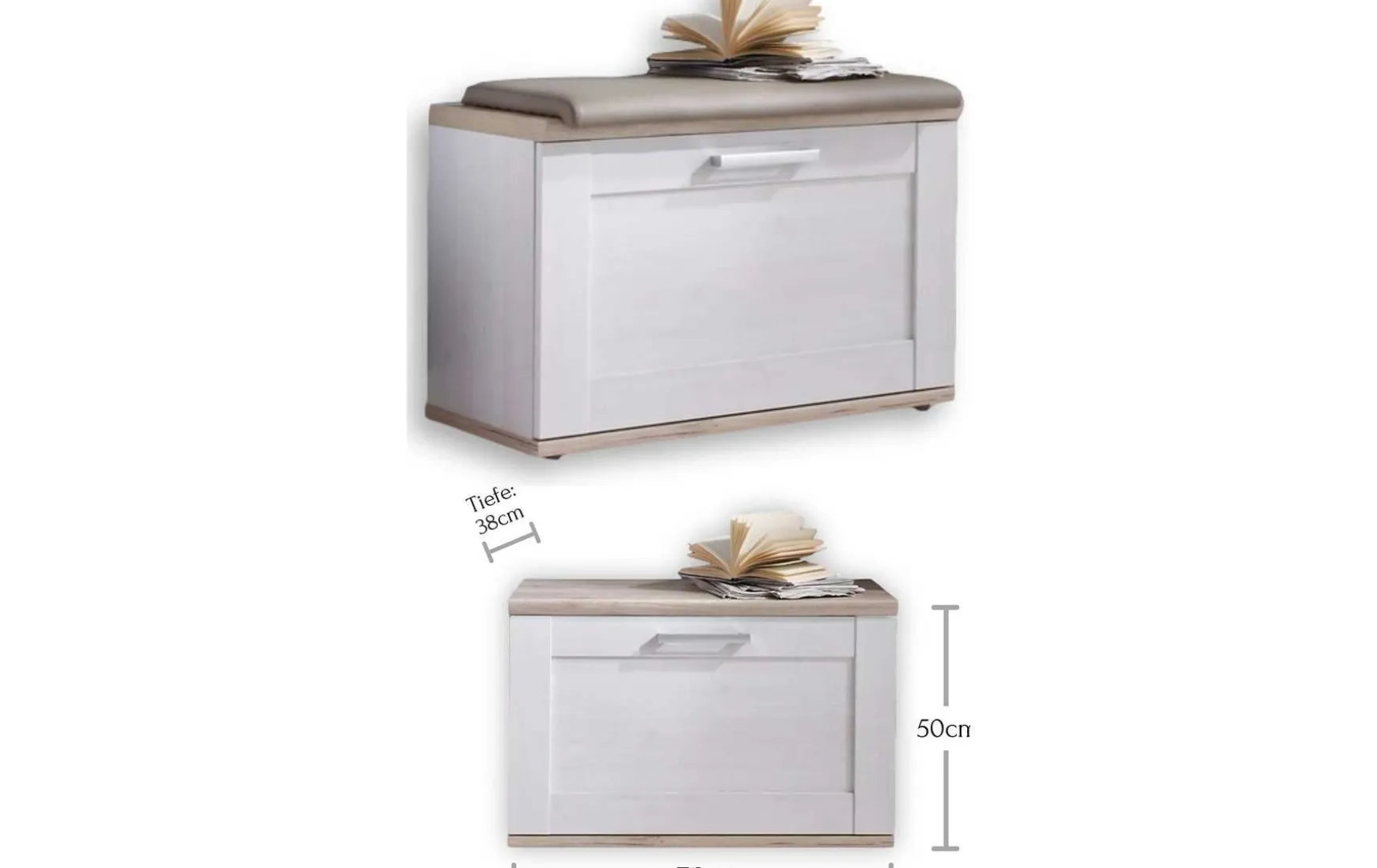 Bequeme Sitzbank mit Stauraum für Ihren Flur – 76 x 50 x 38 cm (B/H/T) – mit einer Klappe, inklusive Mittelseite und zwei Einlegeböden.