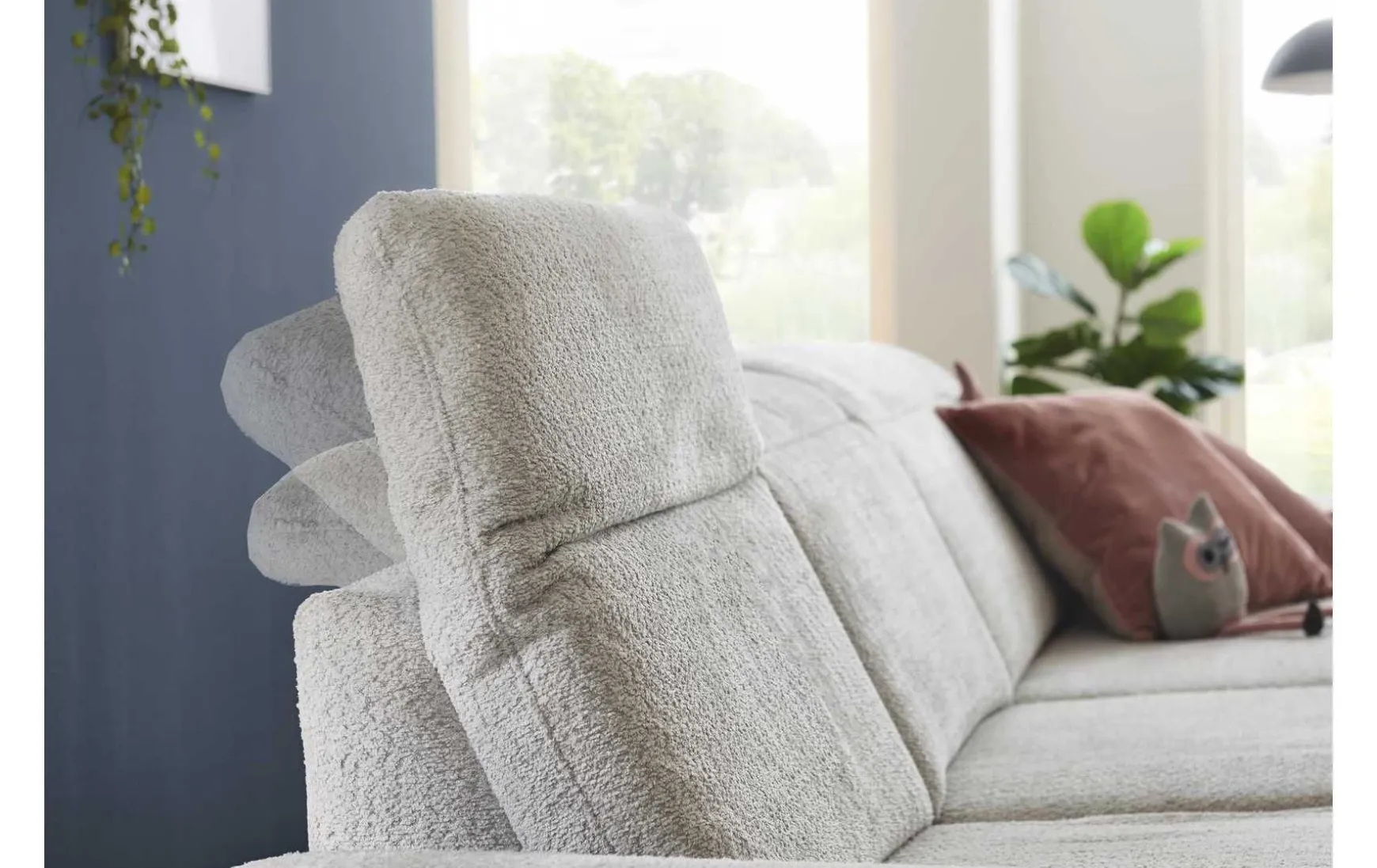 Der hohe Sitzkomfort dieser Polsterecke wird durch eine erstklassige Kaltschaum- oder Federkernpolsterung gewährleistet. Das Sofa ist besonders formbeständig, dadurch werden Sie lange Freude an diesem Sofa haben. Außerdem besitzen alle wählbaren Elemente bereits eine integrierte Kopfpolsterverstellung inkl. einzeln verstellbarer Kopfpolster mit Rasterfunktion und Faltenoptimierung, was ein langes Sitzen z.B. beim TV schauen oder dem abendlichen Leseabendteuer ermöglicht.