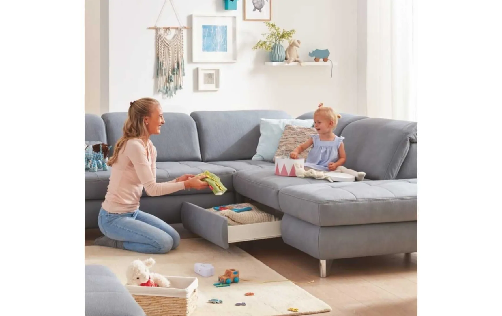 - Gegen Mehrpreis erhältlich: Kopfteilverstellung, Bettfunktion, Stauraum, Schubkasten, und Kissen.